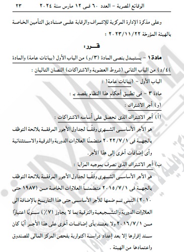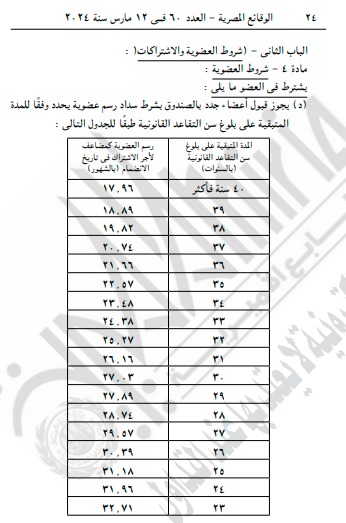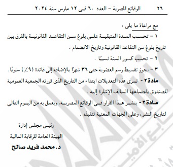 ونصت المادة الأولى من القرار، والذي نشر في الجريدة الرسمية في عددها رقم 60 لسنة 2024، على: