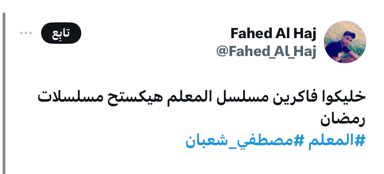 "المعلم" لمصطفى شعبان تريند "إكس" لليوم الرابع على التوالي