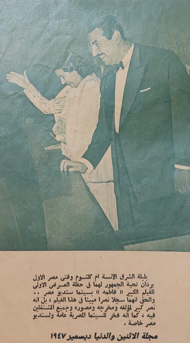 إلا أن فيلم { فاطمة } لأم كلثوم يعد هذا الفيلم قد تجاوز حد النجاح الجماهيري و الفني أيضاً ليمكث في السينما عام كامل و ينجح نجاحا جماهيريا كبيرا جعل الملك فاروق و الأسرة المالكة تدخل السينما تشاهده بعد ما سمعت عنه بل وجميع وزراء مصر وأصبح الفيلم من الأفلام النادرة في تاريخ السينما المصرية التي نجحت نجاحاً تاريخياً جماهيرياً و فنيا بل و بسبب نجاح هذا الفيلم أعيد النظر في الزواج العرفي و أصدرت فتاوي تحرم هذا الزواج لما فيه من ضياع حقوق الزوجة و الأولاد