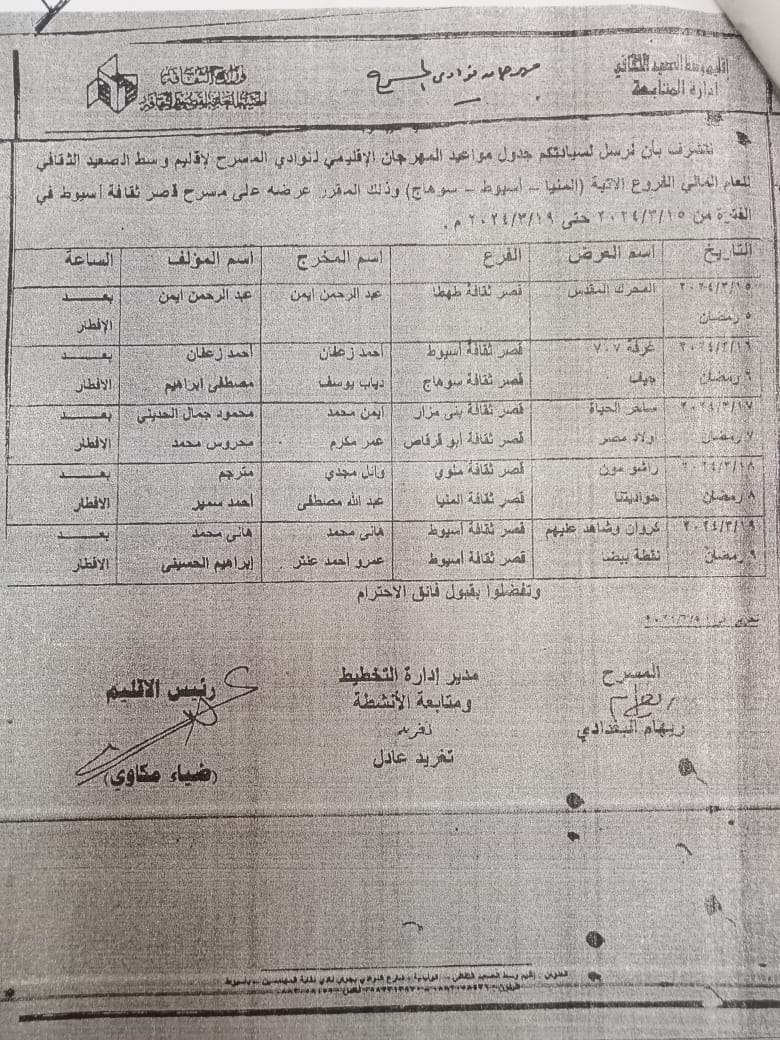 محافظ أسيوط: أنشطة وفعاليات ثقافية وأمسيات شعرية وعروض فنية بقصور الثقافة بمختلف مراكز المحافظة