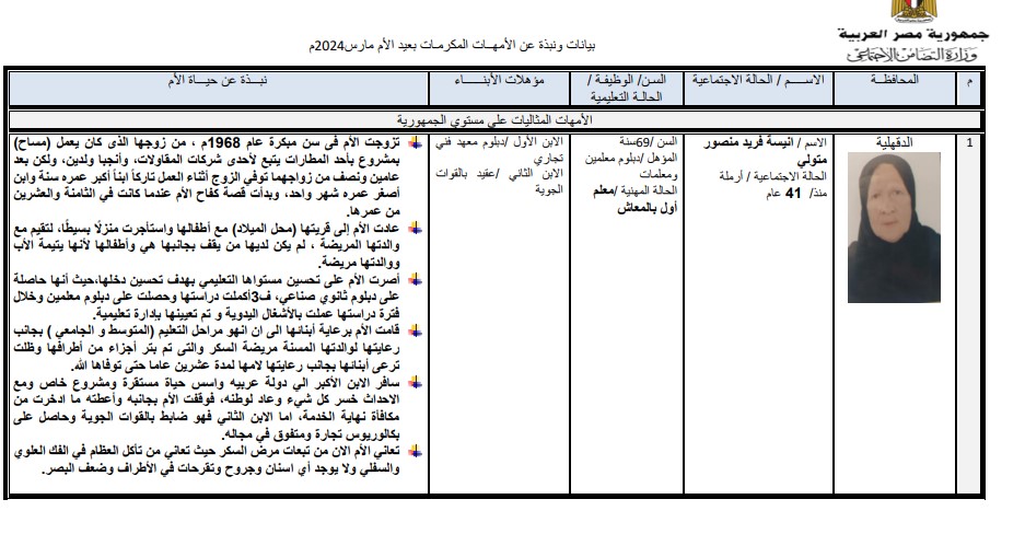 تعرف على أنيسة منصور الأم المثالية الأولى على مستوى الجمهورية لعام 2024