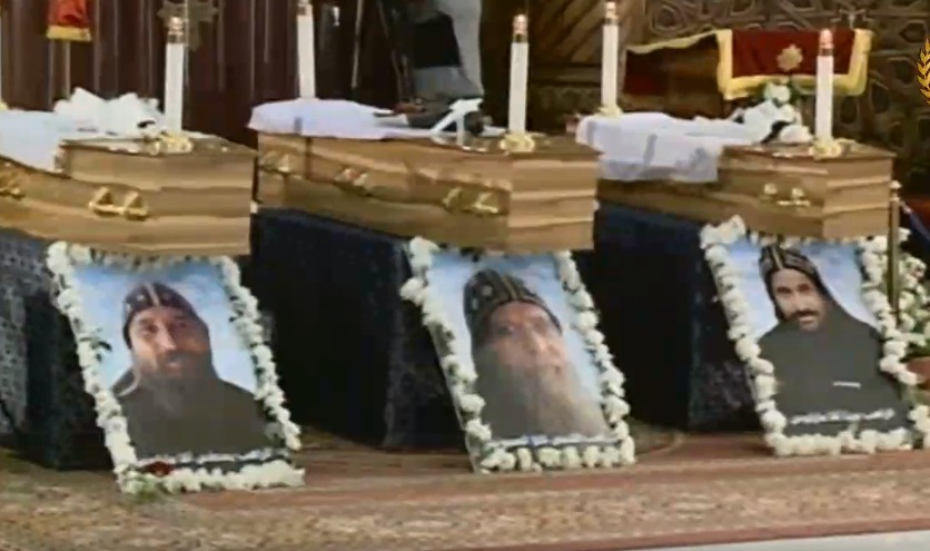 ووصلت جثامين الرهبان الثلاثة القاهرة صباح اليوم الثلاثاء، لتأدية الصلاة على أرواحهم ودفنهم بدير الأنبا صموئيل المعترف بالمنيا.