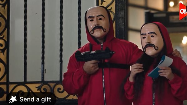 مسلسل الكبير اوى حلقة 9 ، طلب حزلقوم من الشرطة بعد أن حاصروا البنك أنهم لديهم مطالب، وهى أن يأتوا بخضراوات وبوتاجاز من أجل أن يطبخوا داخل البنك لأن الرهائن و العصابة يريدون أن يأكلوا ولكن لن يطلبوا دليفرى.