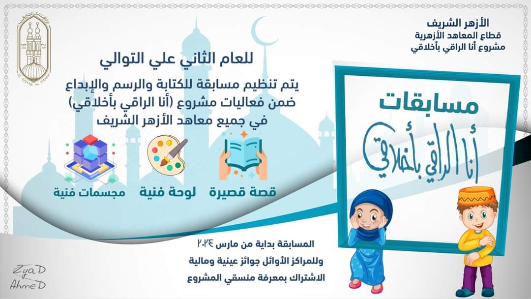 أعلن قطاع المعاهد الأزهرية برئاسة فضيلة الشيخ أيمن عبد الغني، عن تنظيم ثلاث مسابقات إبداعية متنوعة ضمن فعاليات الموسم الثاني من مبادرة «أنا الراقي بأخلاقي»، الذي ينظمه قطاع المعاهد على مستوى مختلف الجمهورية.