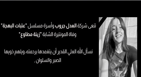 وجاء على تتر بداية الحلقة 10 من مسلسل عتبات البهجة صورة للراحلة بالشريط الأسود، مكتوب عليها: "تنعى شركة العدل جروب وأسرة مسلسل عتبات البهجة وفاة المونتيرة الشابة زينة مطاوع، نسأل الله العلى القدير أن يتغمدها برحمته، ويلهم ذويها الصبر والسلوان".