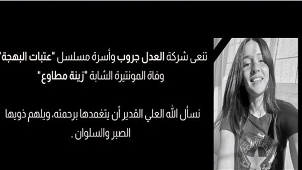 نعى صناع مسلسل عتبات البهجة بطولة النجم يحيى الفخرانى، المونتيرة الشابة زينة مطاوع التي رحلت عن عالمنا الساعات الماضية بعد صراعها مع مرض السرطان، وذلك خلال تتر بداية الحلقة الـ 10 من المسلسل.