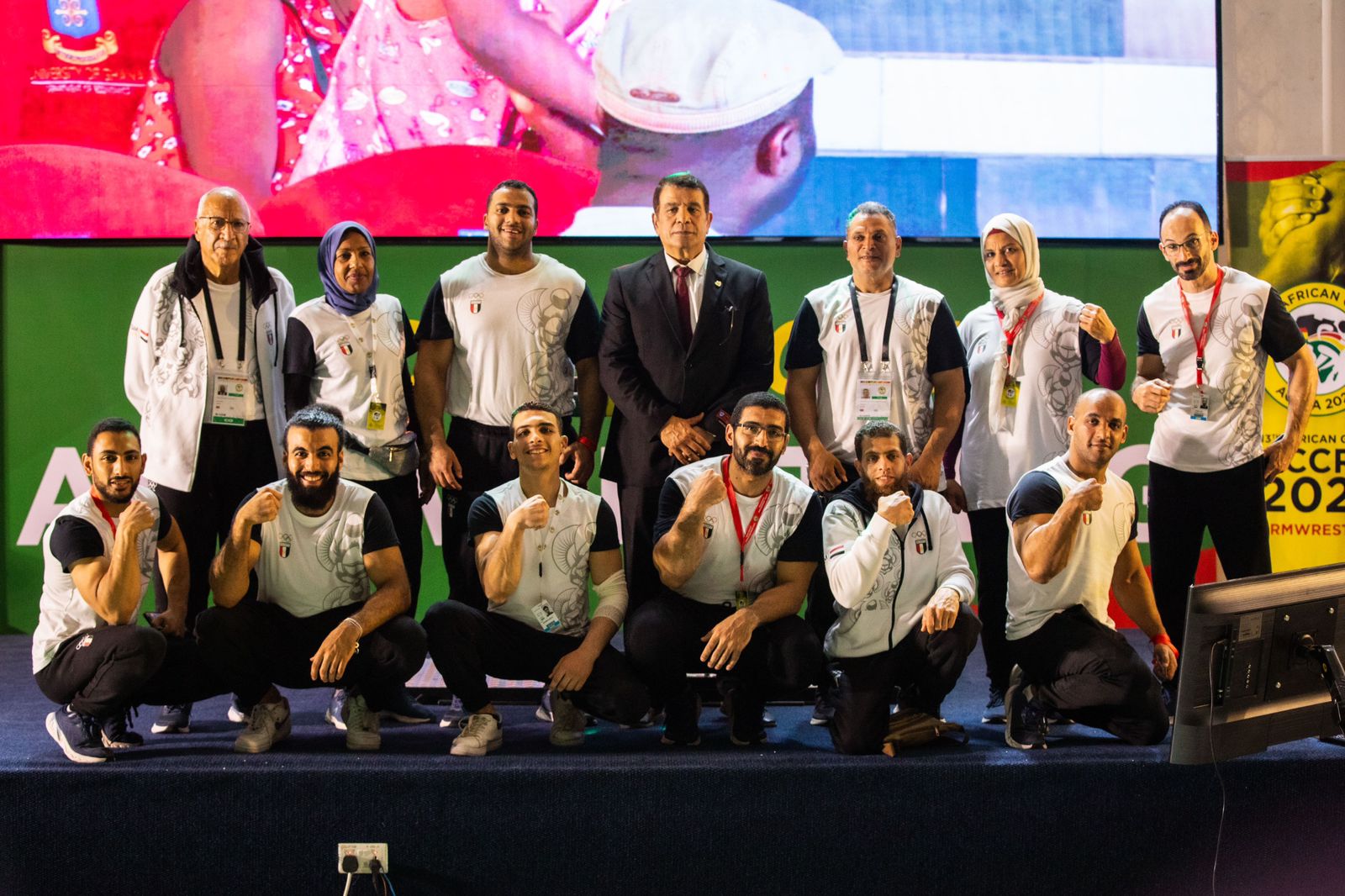 فيما رأس بعثة منتخب مصارعة الذراعين اللواء محمود بركات رئيس اتحاد القوة ويرافقه اللواء سعيد محمد فتحي إداري البعثة.
