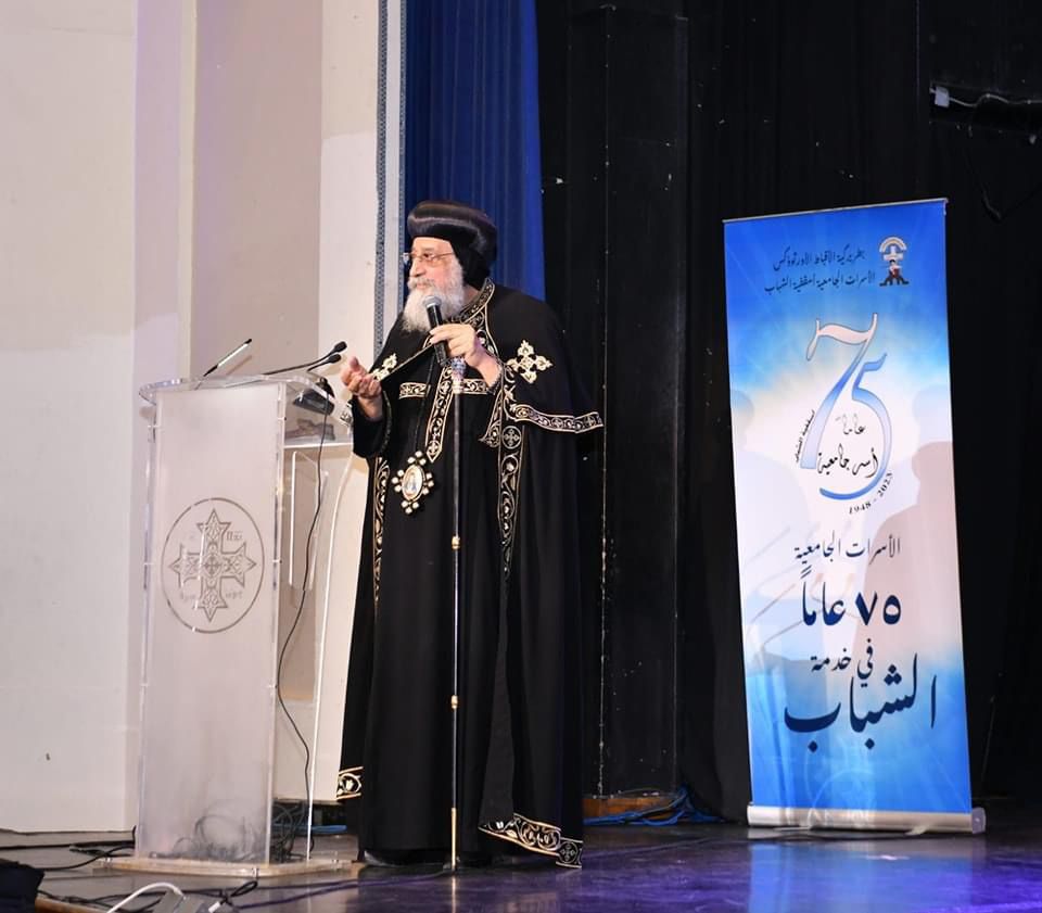 وألقى قداسة البابا كلمة حيَّا خلالها أعضاء الأمانة العامة للأسرات الجامعية وكل الآباء الذين كان لهم دور في هذه الخدمة، متمنيًا لهم مزيد من الخدمة المثمرة، ثم كرًم قداسته الآباء والخدام الذين كانت لهم أدوارًا مؤثرة في خدمة الأسرات الجامعية عبر 75 سنة.