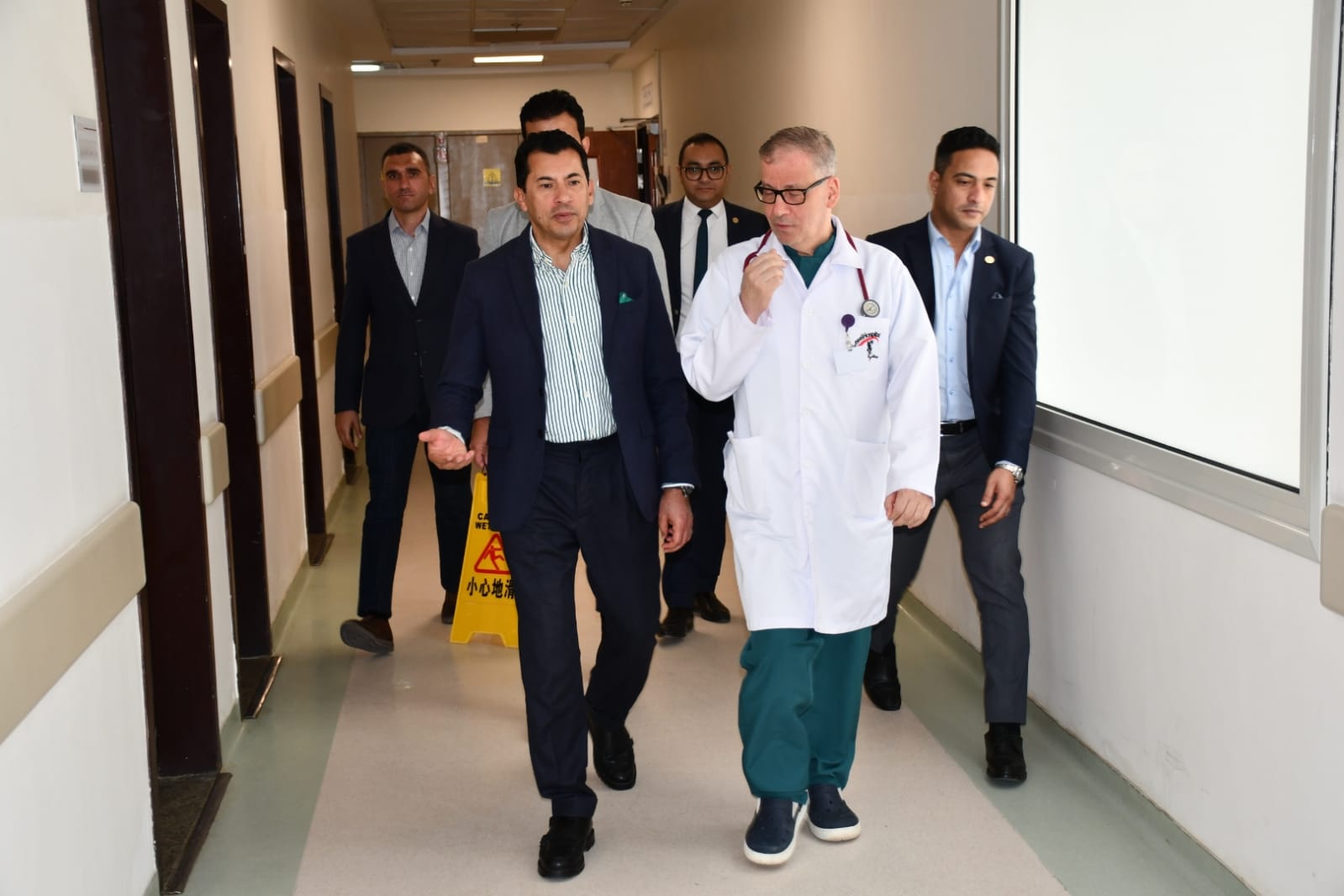 وزير الرياضة يزور أحمد رفعت بمستشفى وادى النيل (صور)