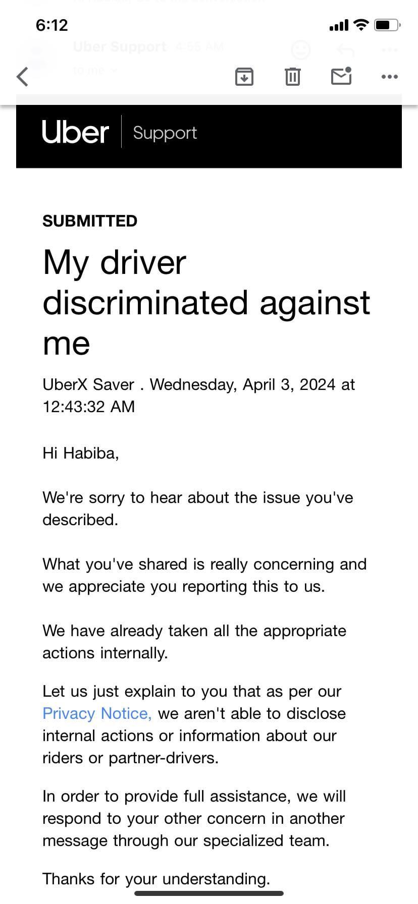 وقالت صاحبة الواقعة “ حبيبة أسامة” وهى تستعرض ما حدث لها قائلة، " كنت طالبه ان درايف للمطار من اكتوبر قالي اطلبي ب اوبر عشان ادخلك جوا المطار لان ان درايف مش هيدخلك جوا و اللوكيشن بايظ فيه و قالي انه ممكن يدخلني جوا بس ادفعله اكتر قولتله لا ف قالي طب اطلبي و انا هقبل و عملنا كده فعلا ".
