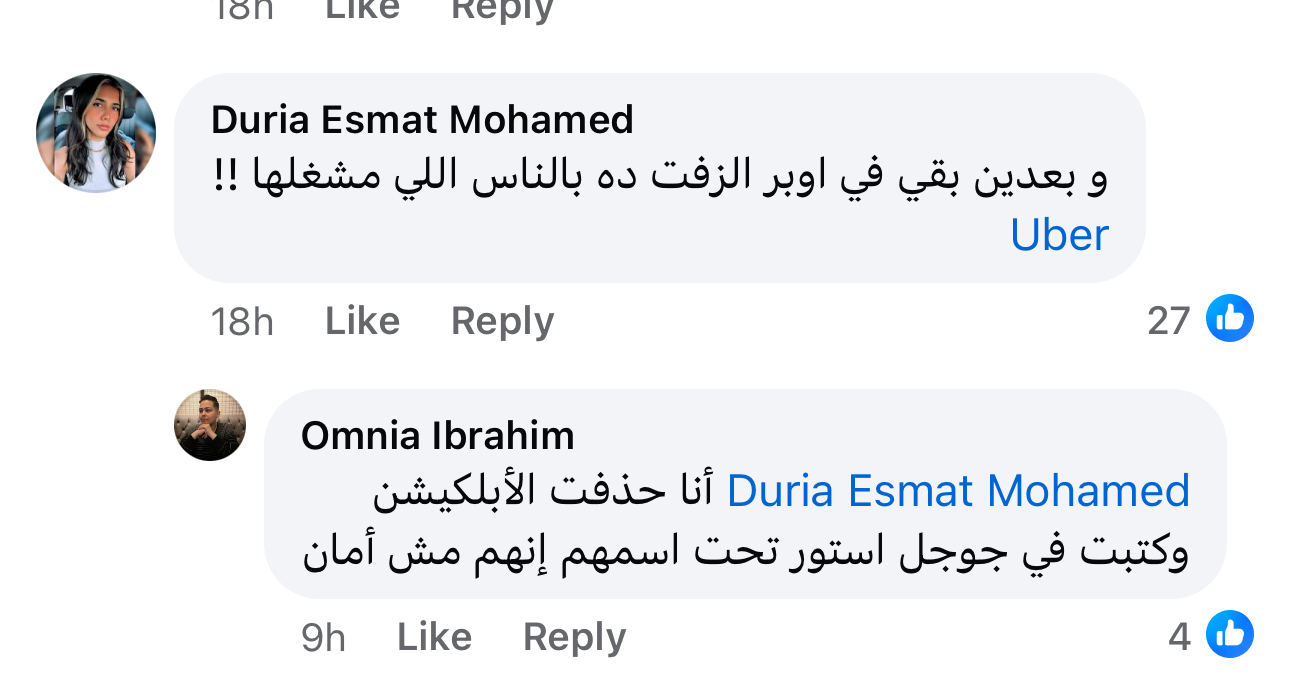 بعد فتاة الشروق " حبيبة الشماع" ورحيلها عقب إلقاء نفسها من سيارة أوبر ، حذرت فتاة من التعامل مع سائق يعمل بشركة أوبر وشركة إندرايف فى نفس الوقت مستعرضه الواقعة التى تعرضت لها.
