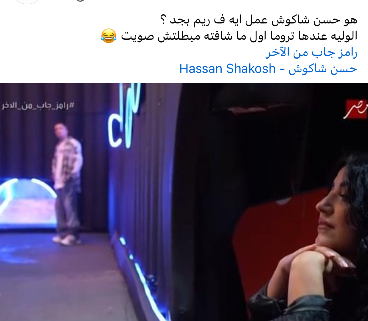 واستضاف الفنان رامز جلال، في الحلقة الثامنة والعشرين من برنامجه «رامز جاب من الآخر» الذي يذاع على شاشة mbc مصر، مطرب المهرجانات حسن شاكوش وطليقته ريم طارق.
