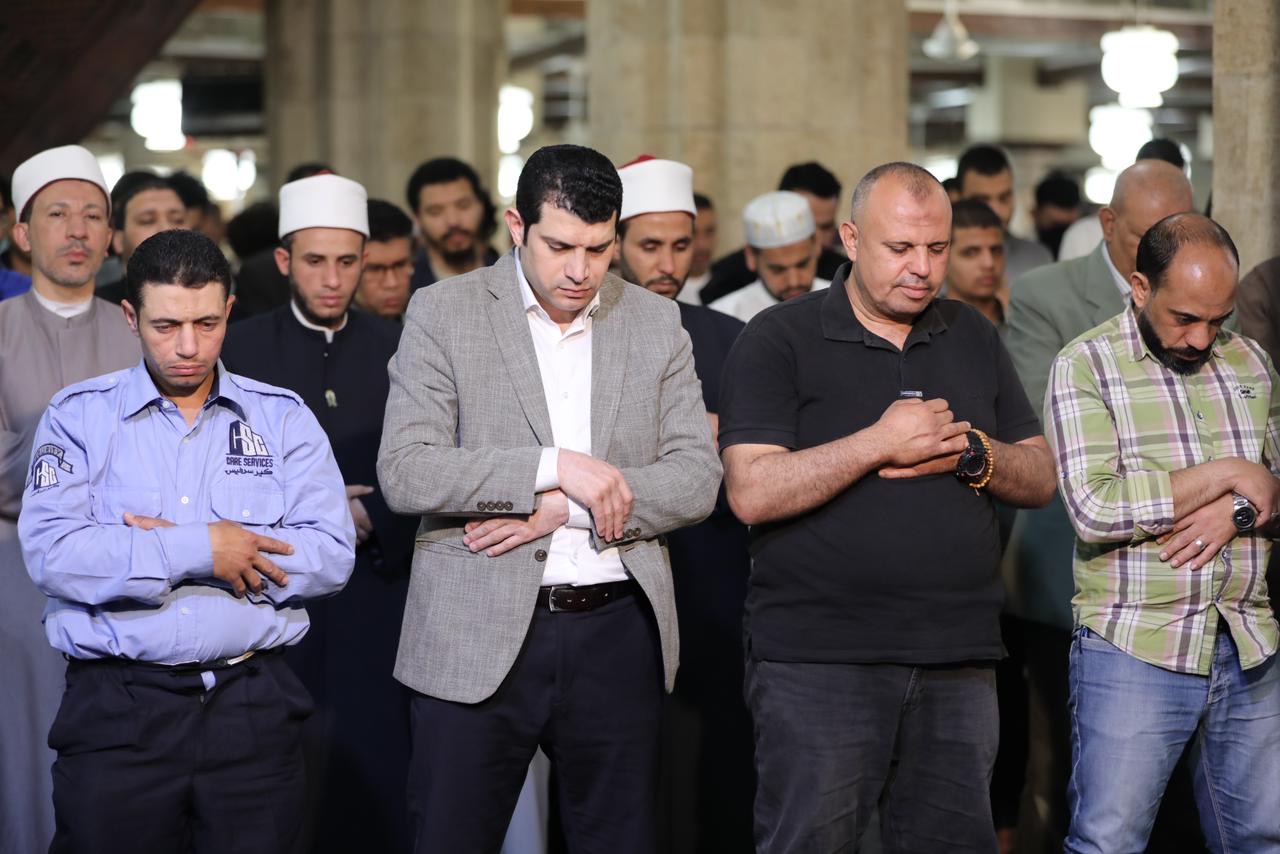 ويتقدم المصلين فضيلة الدكتور محمد الضويني، وكيل الأزهر، وفضيلة الدكتور نظير عياد، الأمين العام لمجمع البحوث الإسلامية، والدكتور أتى خضر، رئيس قطاع مكتب فضيلة الإمام الأكبر شيخ الأزهر، والدكتور هاني عودة، مدير عام الجامع الأزهر، وجمعٌ من علماء وقيادات الأزهر.