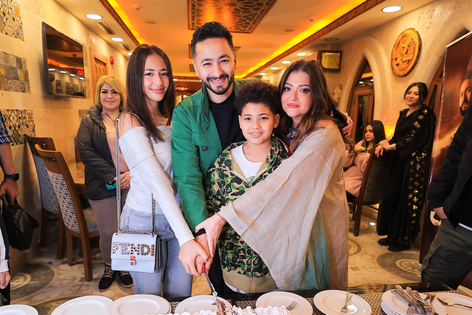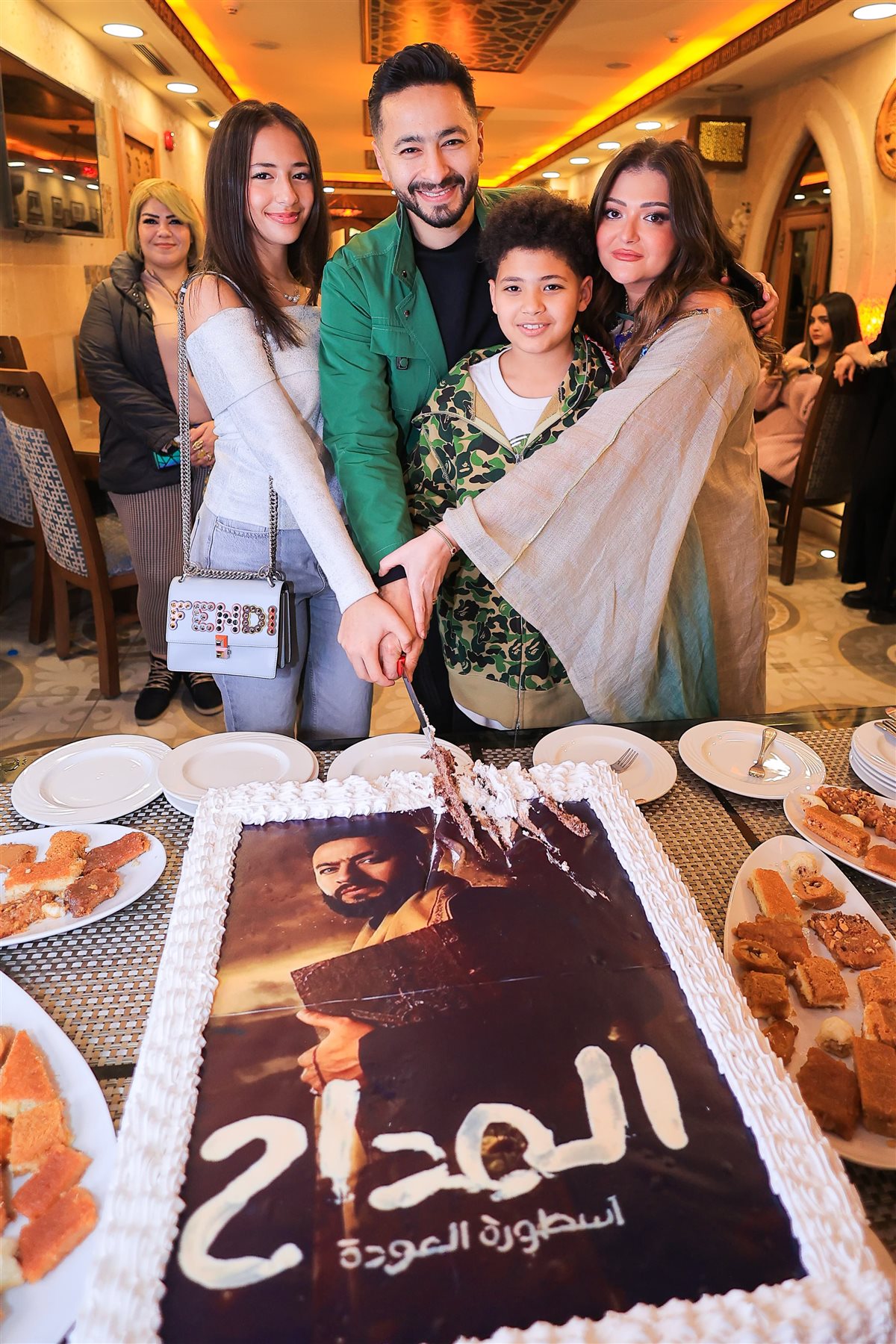 احتفل النجم حمادة هلال بنجاح "المداح 4 - أسطورة العودة" بحفل إفطار مع عرض الحلقة الأخيرة للمسلسل وسط أسرة العمل وحضور د.أسما سميح زوجة حمادة هلال ونجلاهما يوسف وراما وشارك الجميع فى تقطيع تورتة " المداح 4".