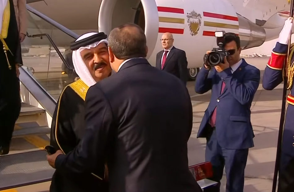 الرئيس السيسي يستقبل ملك البحرين حمد بن عيسى بمطار القاهرة