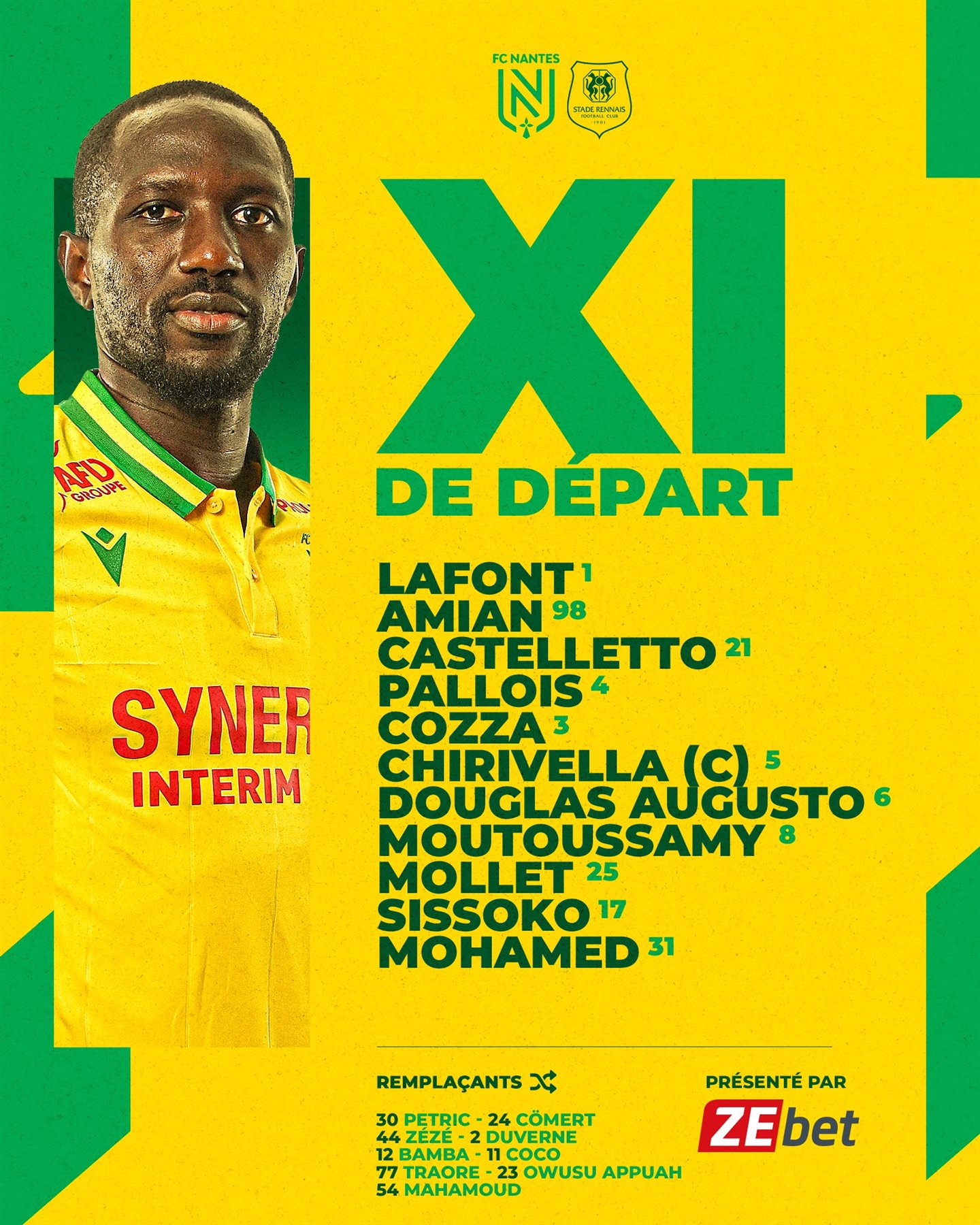 مصطفى محمد أساسي في تشكيل نانت ضد رين بالدوري الفرنسي