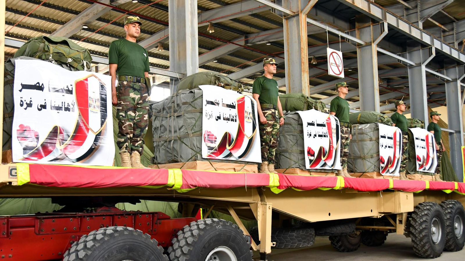 واصلت القوات المسلحة جهودها فى إعداد وتجهيز ونقل المساعدات الإنسانية ومواد الإغاثة العاجلة عبر الجسر الجوى الممتد على مدار الأسابيع الماضية، حيث تقوم عناصر قوات المظلات بالإعداد والتجهيز اليومى لشحنات المساعدات والتى تضم عشرات الأطنان من المواد الغذائية والمستلزمات الطبية التى يتم تقديمها من الهلال الأحمر المصرى وإعدادها للإسقاط الجوى بإستخدام المظلات.