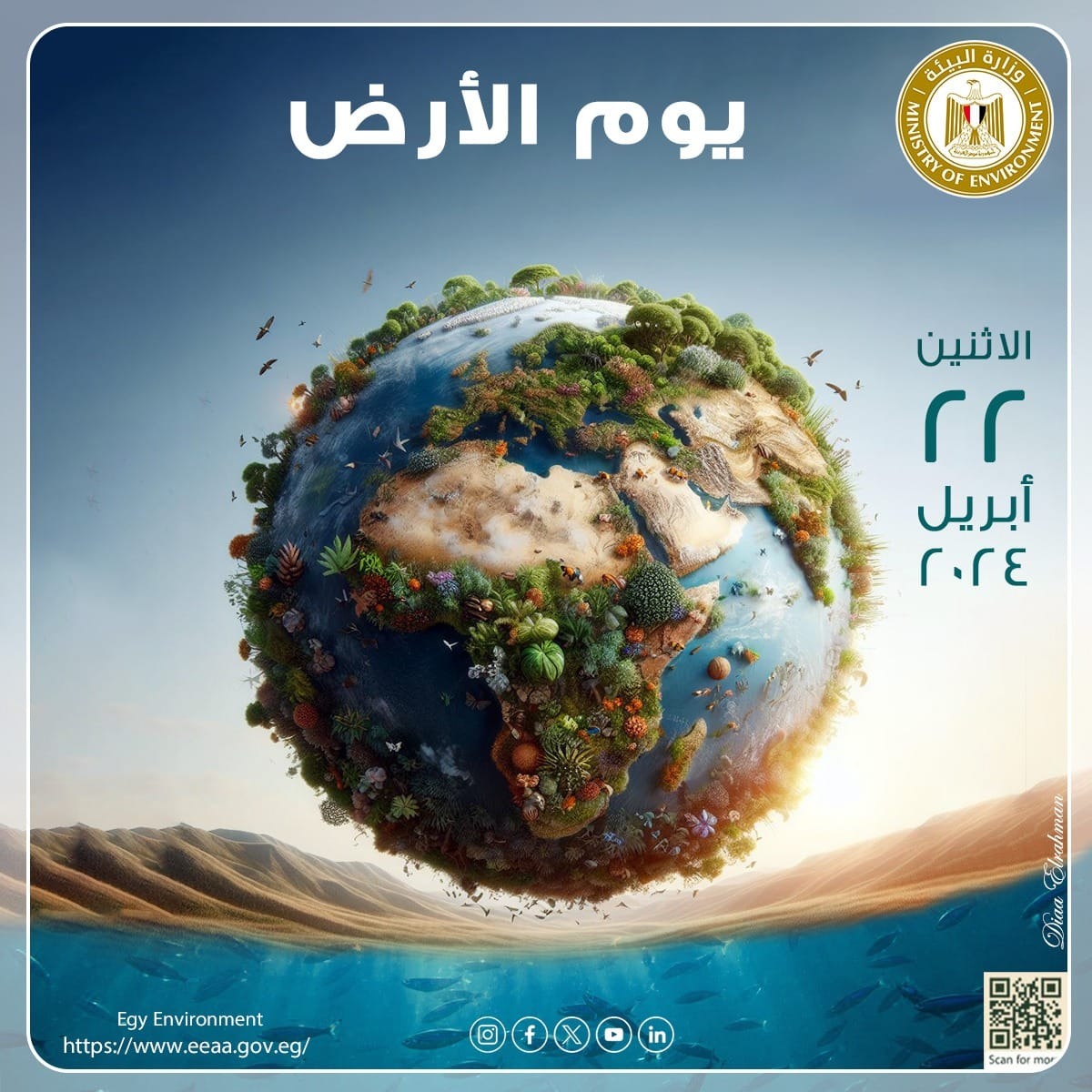 تشارك مصر العالم إحياء اليوم العالمى للأرض 2024، والذي يوافق 22 أبريل من كل عام ، ويقام هذا العام تحت شعار " الكوكب مقابل البلاستيك"، ويتضمن الاحتفال تنفيذ عدد من الفعاليات وتشمل الاحتفال عبر منصات التواصل الاجتماعي لوزارة البيئة ، وذلك من خلال عرض عدد من الرسائل التوعوية للارتقاء بالوعي المجتمعي العام والتوعية بأهمية إنقاذ كوكب الأرض بالحد من استهلاك البلاستيك، وضرورة التصالح مع الطبيعة وتنوعها البيولوجى ، والتأكيد على دور الفرد والمجتمع فى المشاركة لإنقاذ كوكب الأرض، بالاضافة الى تنفيذ عدد من الندوات وورش العمل الفنية بالمدارس والجامعات وقصور الثقافة ، للتوعية بأخطار استخدام البلاستيك وتشجيع استخدام البدائل الصديقة للبيئة.
