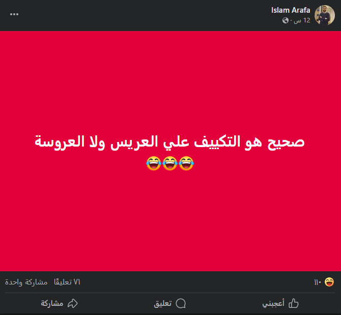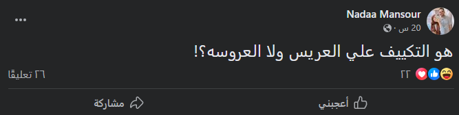 وتصدر هاشتاج “ التكييف علي مين ” محل جدل حول مسئولية تكلفة ثمن جهاز التكييف وهل هو علي العريس أم علي العروسة ، وأخذ جدال التكييف شكلاً من أشكال السخرية والضحك من خلال تنوع التعليقات بين وجعتي النظر ، حيث كتب مستخدميه منشورات أصحابها من الشباب الذكور يؤكدون فيه أن التكييف لا بد أن يكون مسؤولية العروسة وليس العريس.