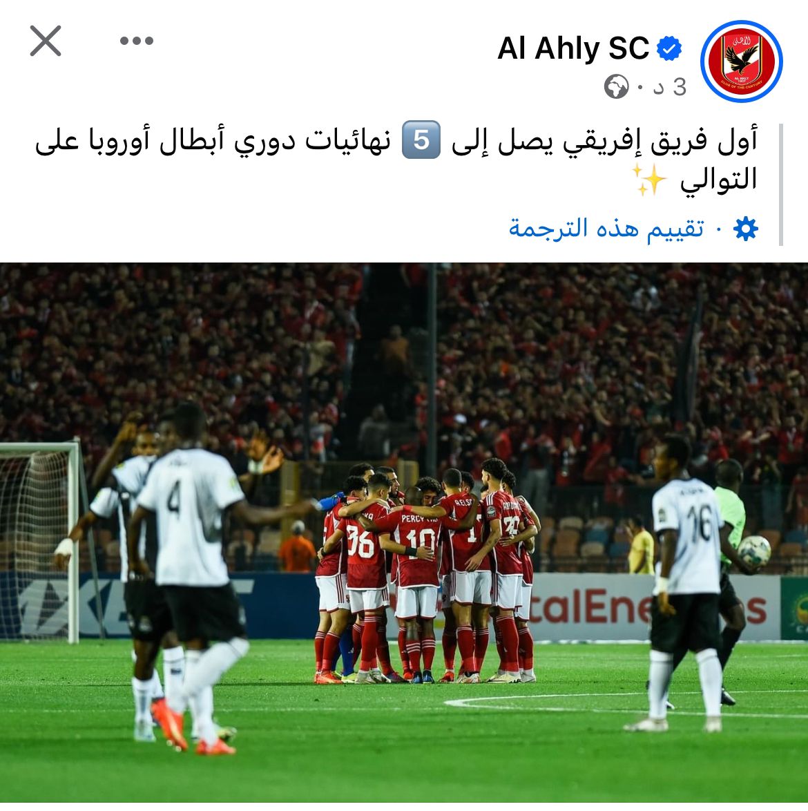 حساب الأهلي عبر "فيس بوك": أول فريق افريقي يصل الى دوري أبطال أوروبا