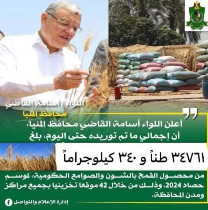 أعلن اللواء أسامة القاضي محافظ المنيا ، أن إجمالي ما تم توريده من محصول القمح بلغ 34761 طناً 340 كيلو جراماً بالشون الحكومية والصوامع منذ بدء موسم حصاد 2024 ، وذلك من خلال 42 موقعاً تخزينياً بجميع مراكز ومدن المحافظة، مشدداً على ضرورة الالتزام بكافة القواعد المنظمة للتوريد لتحقيق الاكتفاء الذاتي من محصول القمح الاستراتيجي، مع اتخاذ كافة التدابير اللازمة لتسهيل أعمال التوريد، تنفيذاً لتكليفات رئيس مجلس الوزراء واللواء هشام آمنة وزير التنمية المحلية .