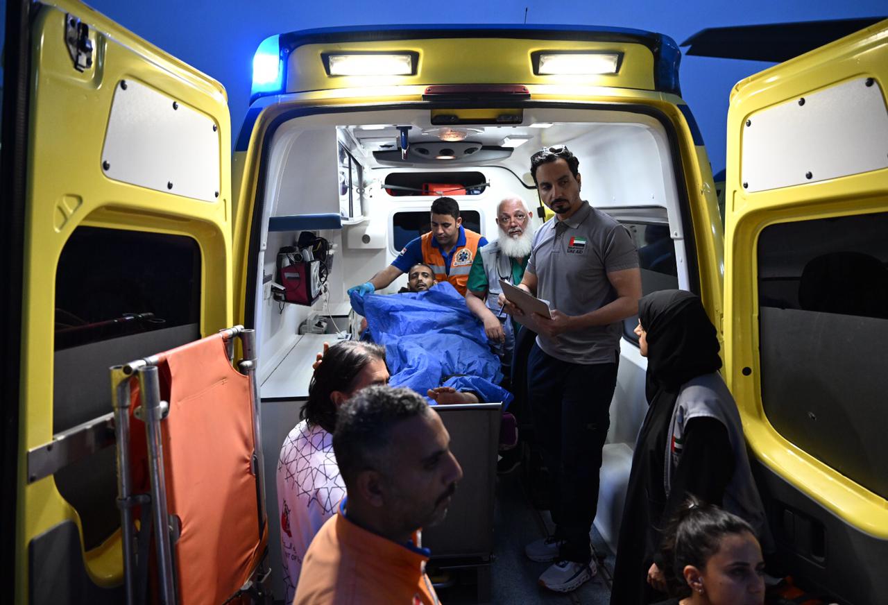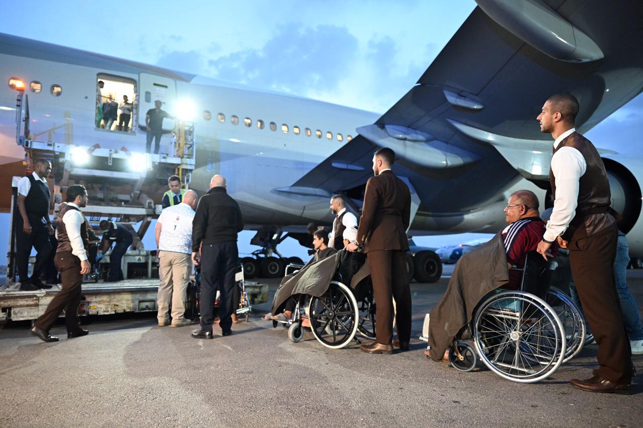 وعقب هبوط الطائرة، القادمة من مطار العريش في مصر، في مطار زايد الدولي بالعاصمة أبو ظبي، بدأت الفرق الطبية نقل الجرحى والمصابين الذين تتطلب حالاتهم رعاية فورية، إلى المستشفيات لتلقي العلاج، فيما نقلت بقية الحالات والمرافقين إلى مدينة الإمارات الإنسانية مقر إقامتهم.