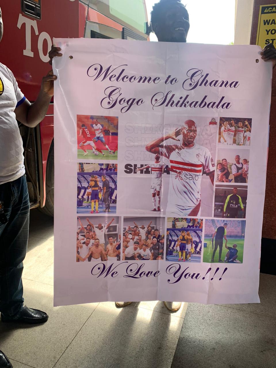 وقام المشجعون بتحية "شيكابالا" والتقاط العديد من الصور التذكارية مع اللاعب، وحمل المشجعون لافتة كبيرة مكتوب عليها، أهلا بك يا شيكابالا في غانا، نحن نحبك".