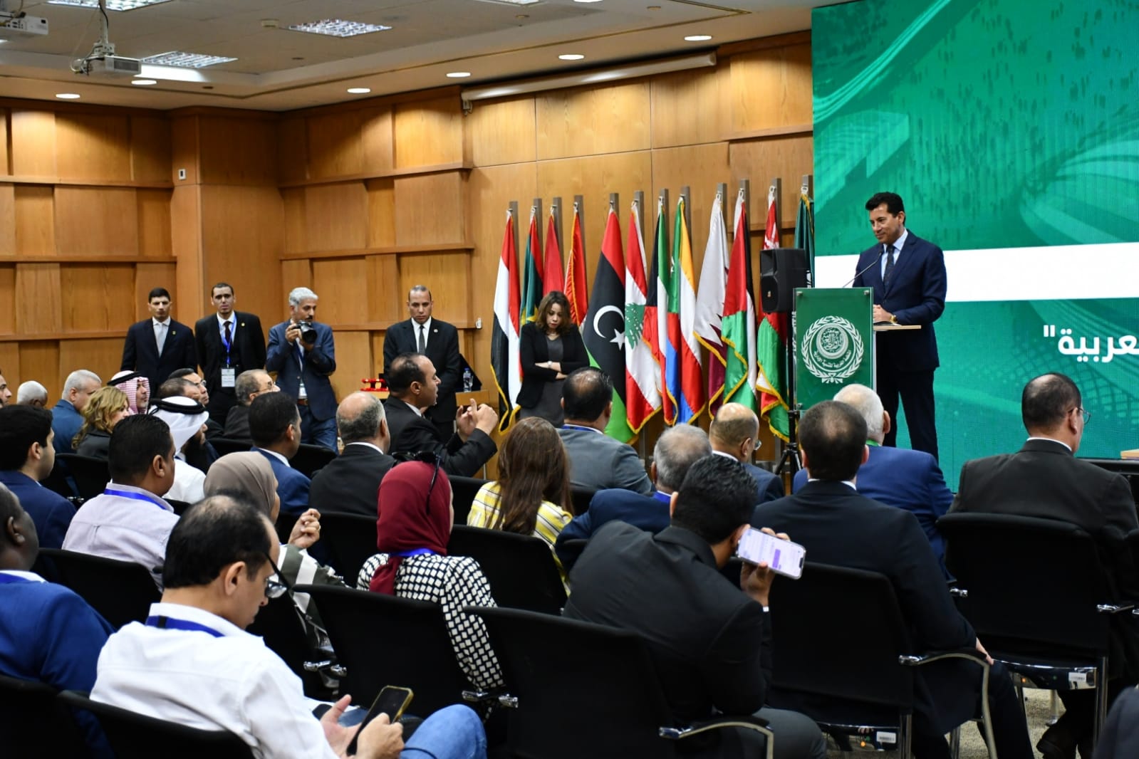 شهد الدكتور أشرف صبحي وزير الشباب والرياضة، رئيس المكتب التنفيذي لمجلس وزراء الشباب والرياضة العرب، والدكتور ناصر الهتلان القحطاني المدير العام للمنظمة العربية للتنمية الإدارية- جامعة الدول العربية، أعمال اليوم الثاني من المؤتمر العربي الثالث للرياضة والقانون تحت عنوان "آليات تعزيز الفاعلية المهنية لمؤسسات التحكيم الرياضى العربية"، والذي تنظمه المنظمة العربية للتنمية الإدارية بجامعة الدول العربية خلال الفترة من 28 - 30 أبريل 2024.