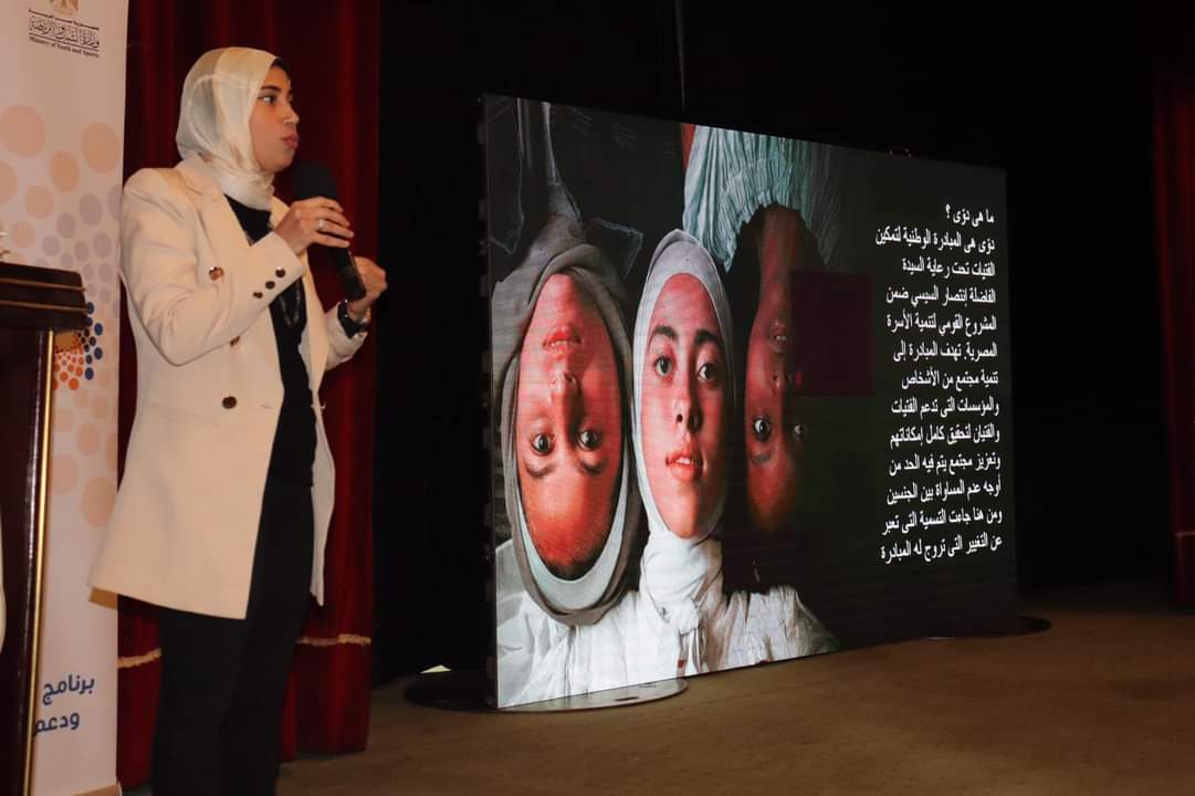 علي هامش الفعاليات تم تقييم الحوارات المجتمعيه للمبادرة الوطنية لتمكين الفتيات « دوّي » ، حيث تم تنفيذ 40 ورشة عمل داخل مراكز الشباب ، وذلك في اطار المشروع القومي لتنمية الأسرة المصرية ، تحت رعاية السيدة الفاضلة إنتصار السيسي قرينة السيد رئيس الجمهورية ، وتحت شعار #بحكايتك_تكمل_حكايتهم ، وتسليط الضوء باستمرار على النماذج الإيجابية للفتيات اللواتي جرى تمكينهن والأشخاص الذين يدعموهن.