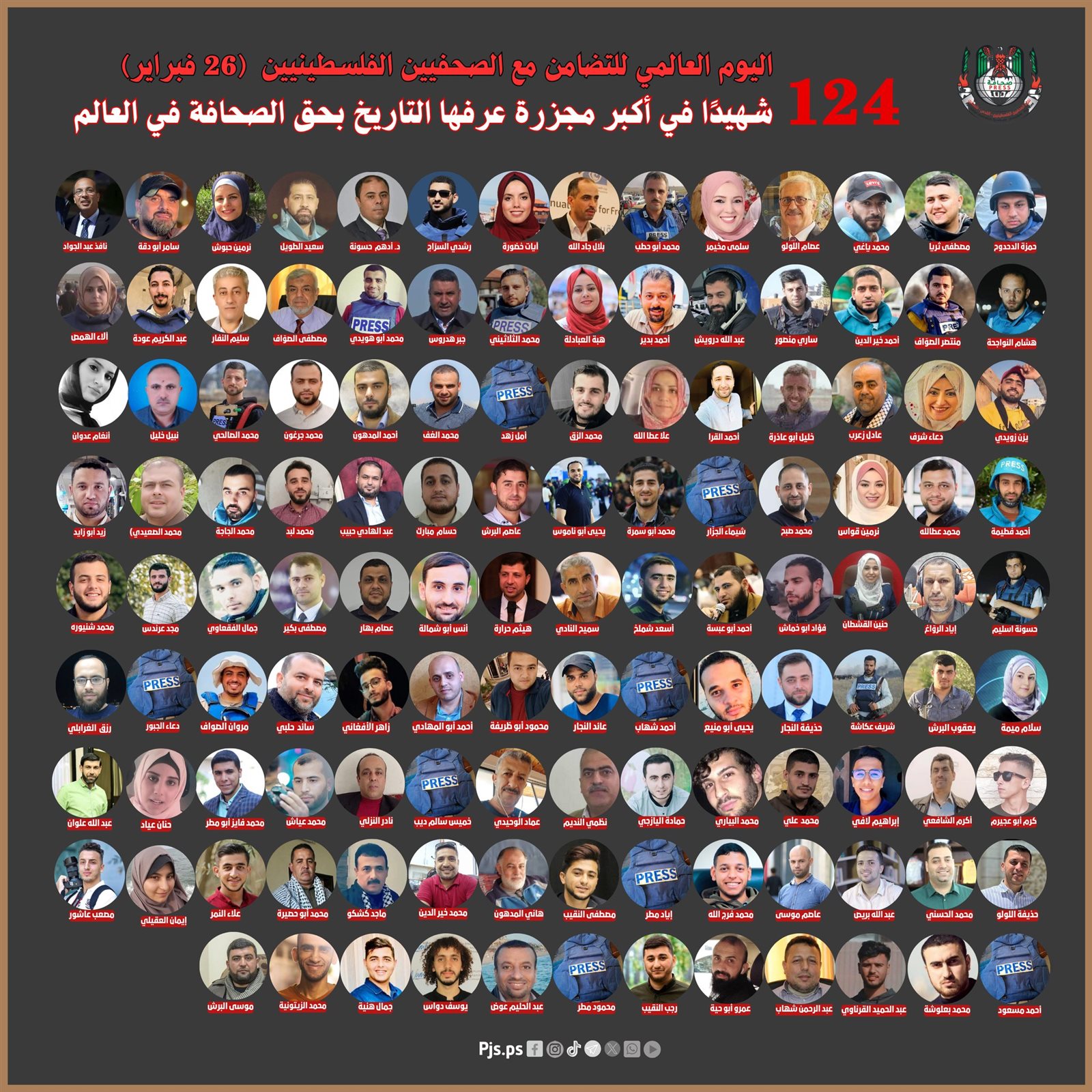في اليوم العالمي لحرية الصحافة ، يقع الصحفيين الفلسطنيين ضحايا للقصف الاسرائيلي في قطاع غزة ، ومنذ بداية القتال في السابع من أكتوبر 2023 ، قتل جيش الاحتلال 140 صحفيا وصحفية وأصيب 70 وأعتقل العشرات منهم في إخفاء قسري وفقا للمكتب الاعلامي الحكومي بغزة، كما رصدت نقابة الصحفيين الفلسطنيين أن هناك حوالي 1500 صحفي هجروا من منازلهم وأصبحوا نازحين في المستشفيات ومراكز الإيواء.