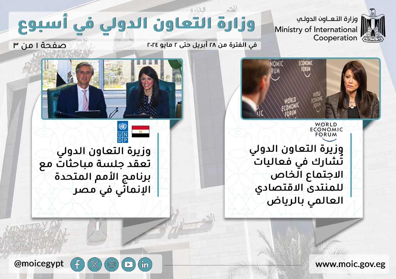 شهدت وزارة التعاون الدولي، خلال الأسبوع الماضي، العديد من الفعاليات والاجتماعات في إطار الدور الذي تقوم به الوزارة لتدعيم العلاقات الاقتصادية مع شركاء التنمية متعددي الأطراف والثنائيين، لدعم رؤية الدولة التنموية وتحفيز جهود العمل الإنمائي المشترك.