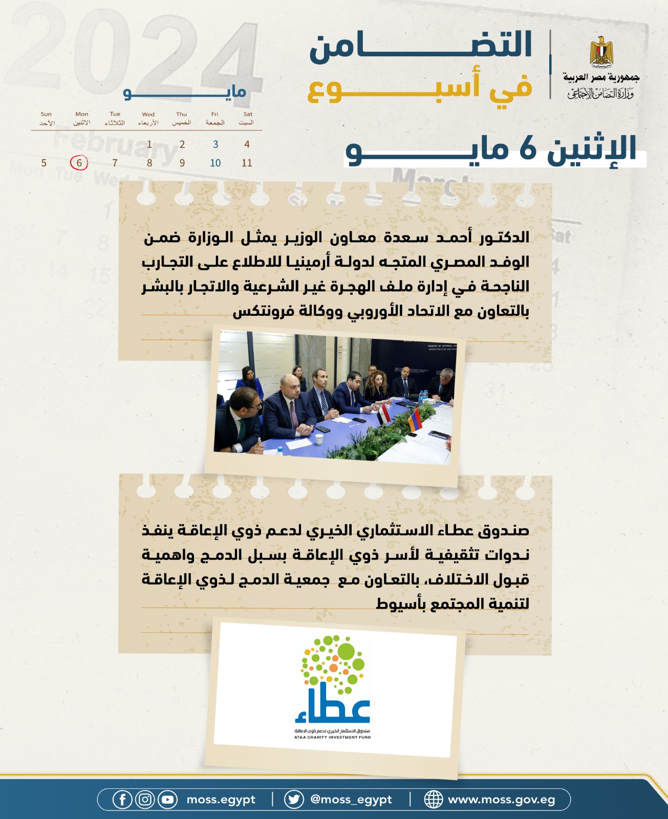 - صندوق عطاء الاستثماري الخيري لدعم ذوي الإعاقة ينفذ ندوات تثقيفية لأسر ذوي الإعاقة بسبل الدمج وأهمية قبول الاختلاف، بالتعاون مع جمعية الدمج لذوي الإعاقة لتنمية المجتمع بأسيوط.