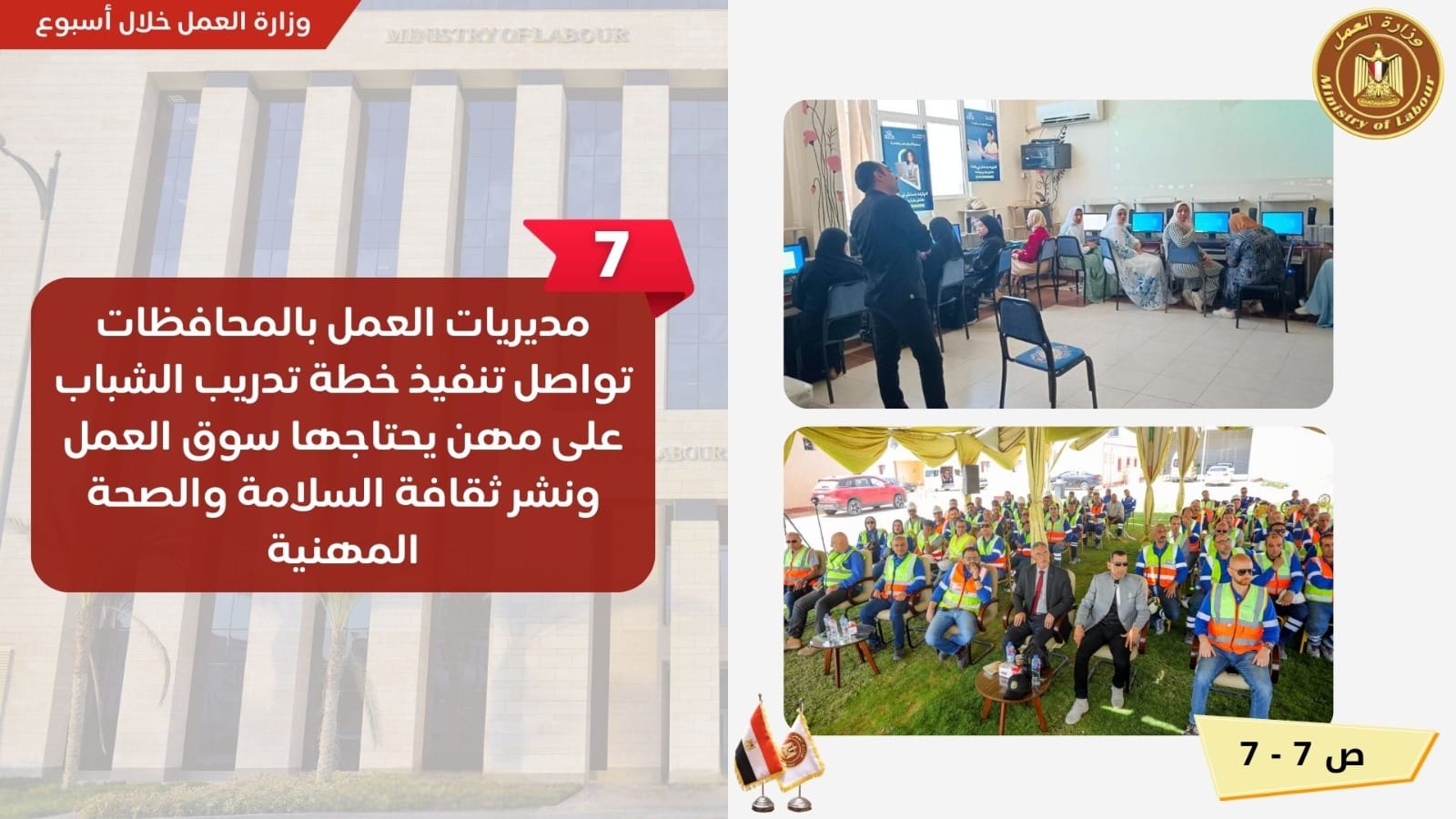 أصدرت وزارة العمل اليوم السبت "إنفوجراف " بشأن نشاط الوزارة خلال الـ7 أيام الماضية..خلال الأسبوع إتفق حسن شحاتة وزير العمل،مع ديميتريوس كاريديس، وزير الهجرة واللجوء اليوناني،والسفير نيكولاوس باباجيورجيو سفير اليونان لدى مصر،والوفد اليوناني المرافق لهما ،على إستراتيجية عمل خلال الفترة المُقبلة لإرسال عمالة مصرية ماهرة ،ومُدربة إلى دولة اليونان ،وتفعيل كافة أشكال التعاون والإتفاقيات،والبروتوكولات الخاصة بتنقل الأيدي العاملة المصرية إلى اليونان ..وإلتقى الوزير مع اللجنة الإستثنائية المُختصة بتنفيذ مشروع مهني 2030،لمناقشة البرامج والمناهج التدريبية الخاصة بمشروع "مهني 2030"،مع شركاء العمل والتنمية من الوزارات المعنية..وعقد الوزير إجتماعا مع مُمثلي وزارة الإتصالات وتكنولوجيا المعلومات ،بشأن عرض خطة العمل الخاصة بمنصة البنية المعلوماتية والمنظومة الخدمية الألكترونية لسوق العمل ..وكذلك مع عددِ من مُمثلي شركات إلحاق العمالة بالخارج ،للوقوف على أخر التطورات بشأن العِمالة المصرية الموسمية لموسم الحج لهذا العام "2024" ..وأكدت وزارة العمل حرصها على المزيد من التعاون مع منظمة العمل الدولية ،وأوضحت أن ثقافة الجمهورية الجديدة تقوم على مبدأ الحوار الإجتماعي بين ثلاثية العمل من حكومة وأصحاب أعمال وعمال ،مُثمنة كافة أوجه العمل المُشترك مع منظمة العمل الدولية للمزيد من ترسيخ تلك "الثقافة"،وذلك خلال ورشة عمل نظمها مكتب منظمة العمل الدولية بالقاهرة بالتعاون مع مؤسسة التمويل الدولية "ifc" ،بعنوان "معايير العمل والممارسات الدولية الجيدة في إدارة العمل "..كما أعلنت الوزارة عن توفير فرص للتدريب المهنى المجانى على مهن التفصيل والخياطة ، والتطريز ، وتدريب الفندقة الشاملة ،بمركز التدريب المهنى التابع لمديرية عمل الاقصر..وتستمر مديريات العمل بالمحافظات فى تنفيذ خطة الوزارة بشأن تدريب الشباب على مهن يحتاجها سوق العمل،وتوفير فرص العمل تنسيقا مع القطاع الخاص،ونشر ثقافة السلامة والصحة المهنية،والتفتيش على المنشأت لتعزيز علاقات العمل بين صاحب العمل والعامل....إلى التفاصيل .