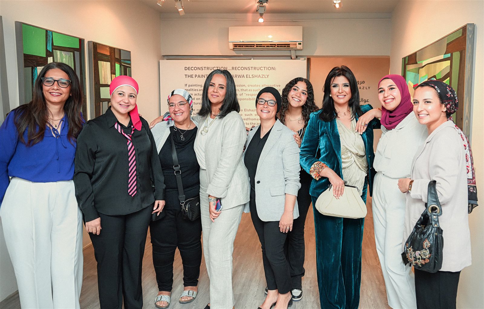 منى الشاذلى تحتفل بافتتاح معرض شقيقتها الفنانة التشكيلية مروى الشاذلى "عوالم مستقرة"
