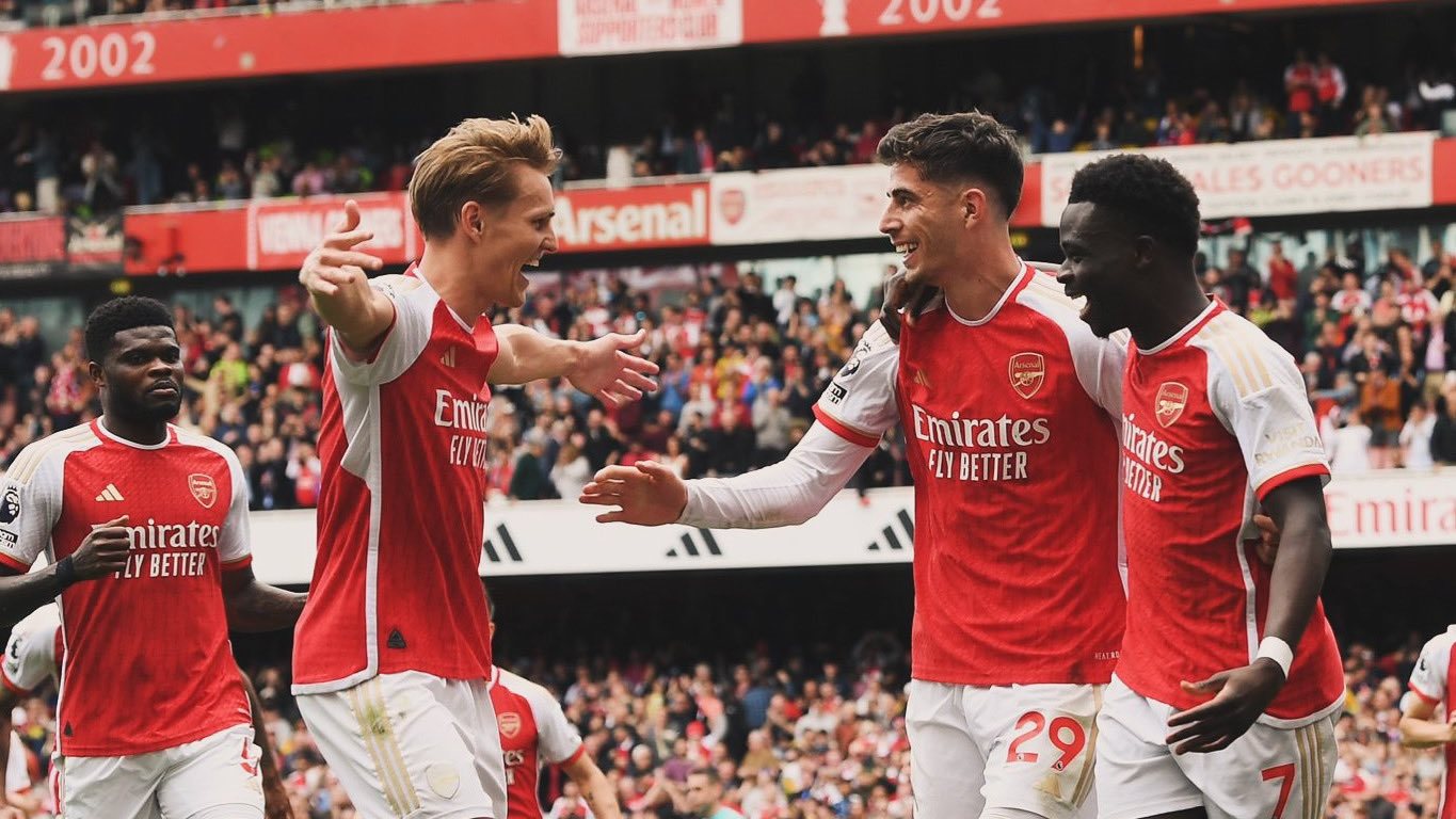 خط الوسط : جورجينيو – ديكلان رايس – مارتن أوديجارد.