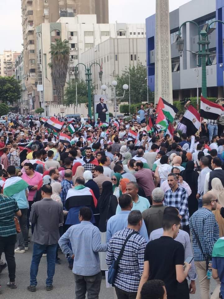 نظم الآلاف من أهالى محافظة الشرقية أمام قصر ثقافة الزقازيق بجوار مبني محافظة الشرقية وقفة تضامنية مع الشعب الفلسطينى لتأييد موقف مصر والقيادة السياسية من القضية الفلسطينية.