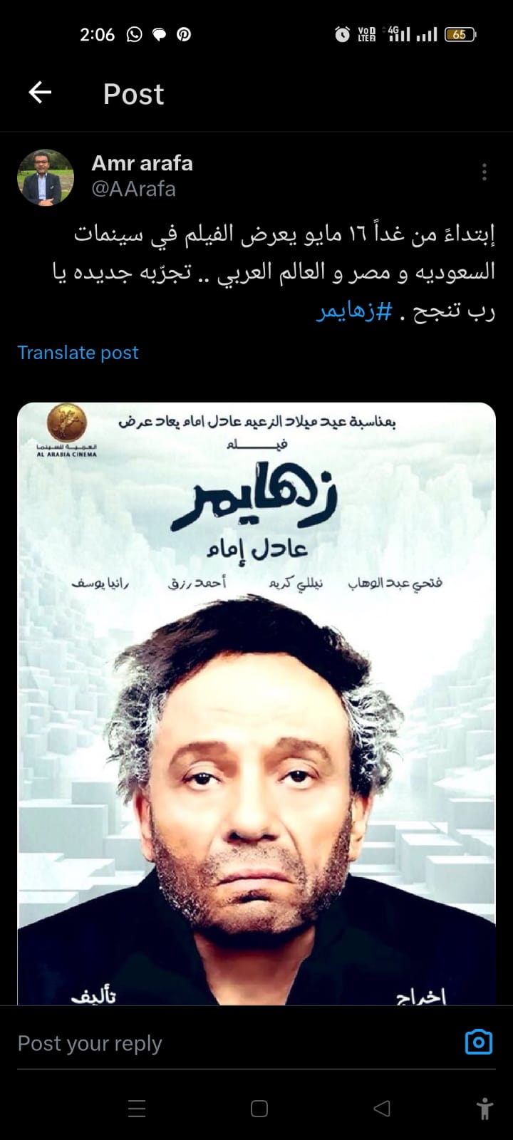 أعلن المخرج عمرو عرفه على صفحته الخاصة عبر موقع إكس ، أنه سيتم عرض فيلم “زهايمر” بطولة الزعيم عادل إمام في جميع دور السينما بمصر والسعودية والعالم العربي غدا 16 مايو بمناسبة عيد ميلاد الزعيم عادل إمام .