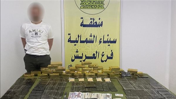 أمن شمال سيناء يضبط عنصر اجرامي بحوزته 25 كيلو حشيش وأقراص مخدرة وسلاح ابيض