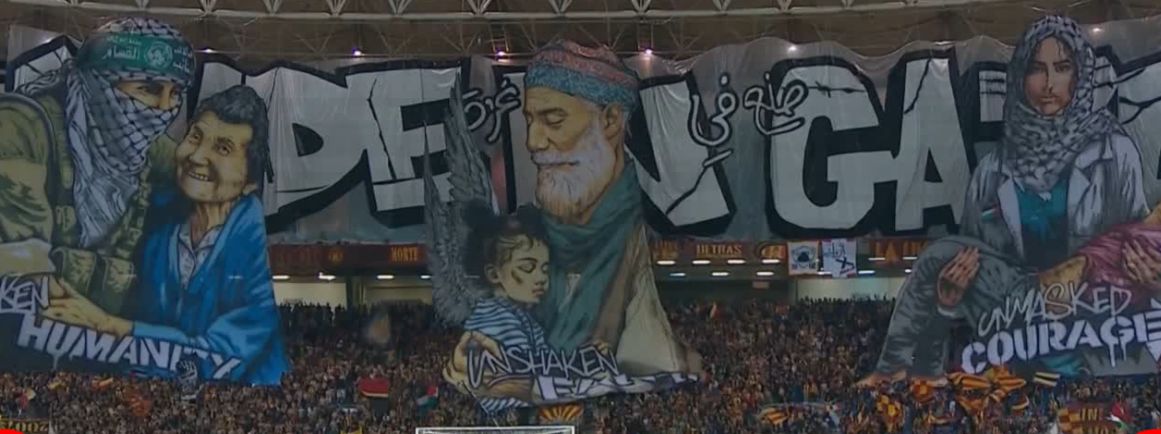 صنع فى غزة.. ستاد رادس يتزين بـ "تيفو" يدعم القضية الفلسطينية