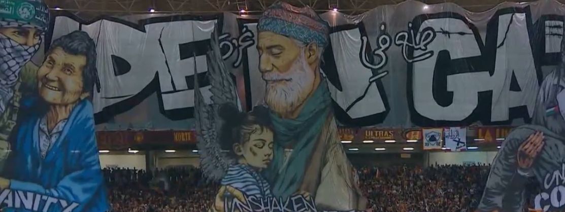 حرصت جماهير الترجي التونسي على رفع "تيفو" يدعم القضية الفلسطينية قبل مباراة فريقها أمام الأهلي والمباراة التي تجمعهما مساء السبت على استاد حمادي العقربي برادس في ذهاب نهائي دوري أبطال أفريقيا، وكتب عليه عبارة "صنع في غزة".