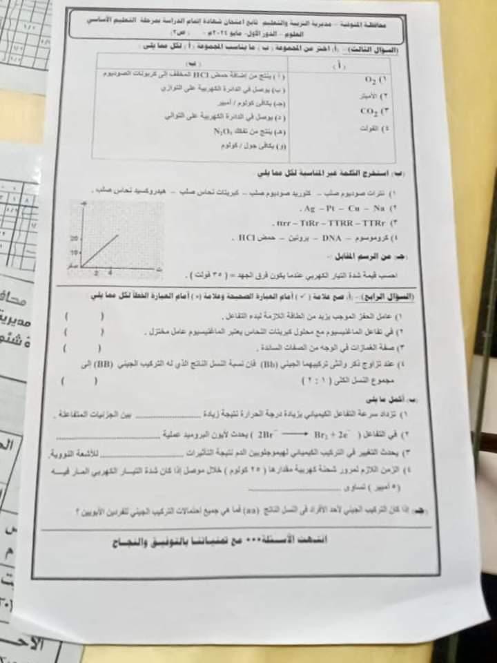 تداول امتحان العلوم للشهادة الإعدادية بالمنوفية قبل دخول اللجان بساعة ونصف والتعليم :نحقق في الاسئلة المتداولة