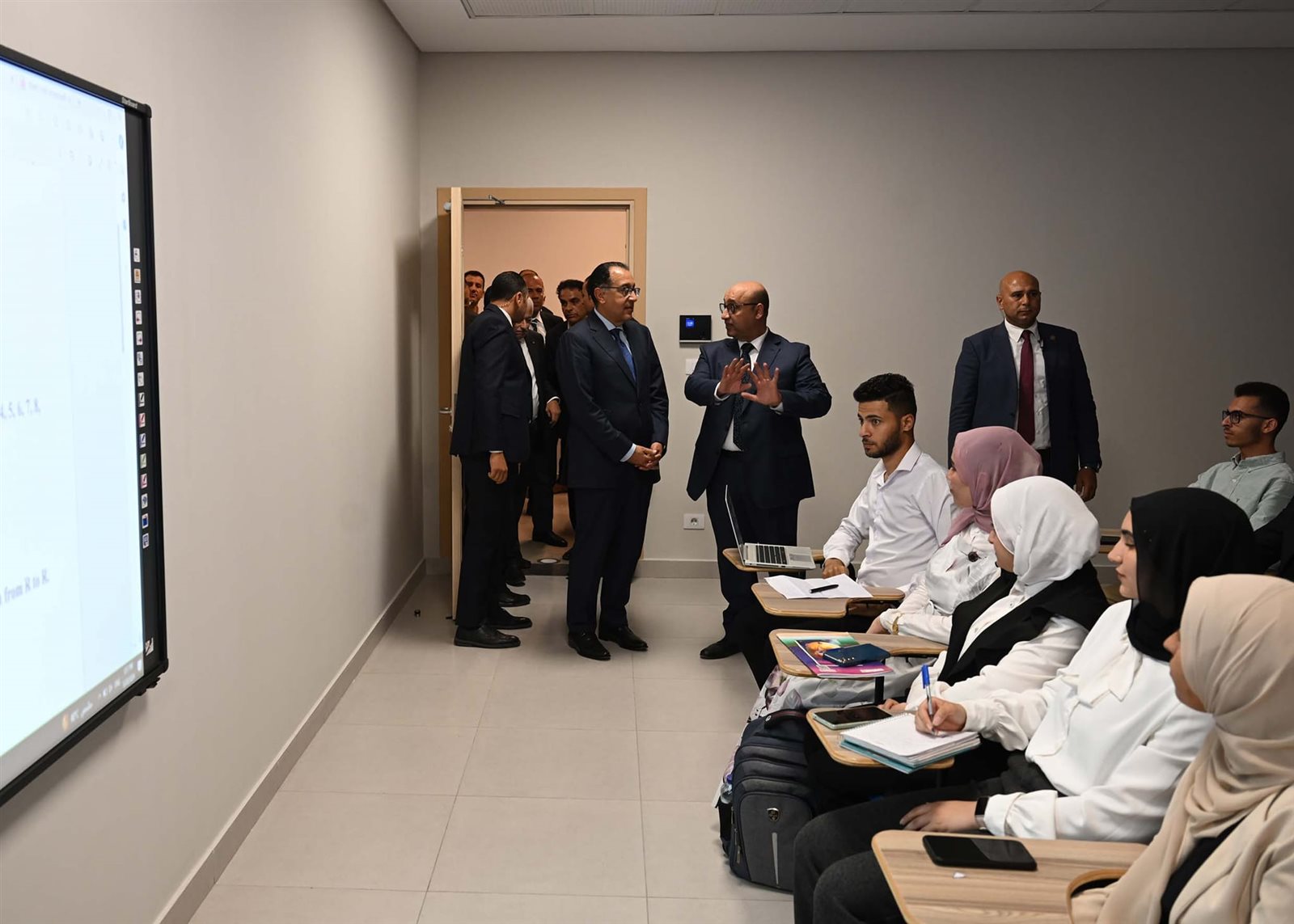 وتفقد الدكتور مصطفى مدبولي، ومرافقوه، عدداً من أقسام الجامعة، تضمنت معامل التحكم والنظم الصناعية، والكهرباء، والكمبيوتر، إلى جانب قاعات الدراسة والمحاضرات، حيث شاهد نماذج لمشاريع طلاب الجامعة من التخصصات المختلفة، وأجرى حوارًا وديًا مع عدد منهم حول نظام الدراسة بالجامعة، وسألهم عن دوافع الالتحاق بجامعة تكنولوجية، وأكدوا أنهم جاءوا من محافظات مختلفة وأنماط تعليم متنوعة، وكان دافعهم للالتحاق بالجامعة دراسة تخصصات تكنولوجية فريدة تمنحهم ميزة نسبية في سوق العمل وتؤهلهم لفرص متميزة.