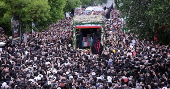 أظهرت لقطات بثها التلفزيون الرسمي الإيراني تدفق ملايين المشيعين ، إلى موكب جنازة الرئيس الإيراني، إبراهيم رئيسي، ووزير خارجيته وسبعة أشخاص آخرين في طهران، الذين لقوا حتفهم في حادث مروحية.