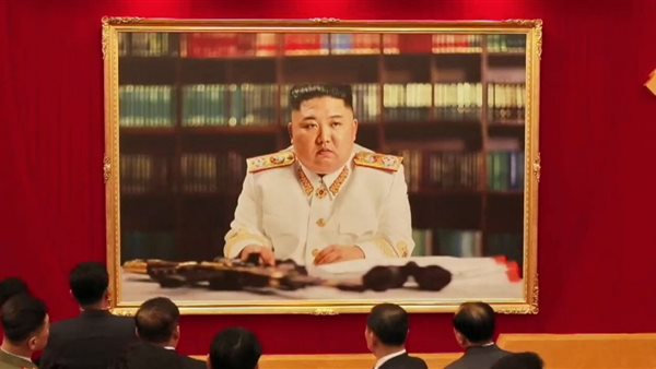 بثّ تلفزيون كوريا الشمالية، صورة للزعيم "كيم جونج أون"، تظهره باللباس العسكري مع سلاح "رشاش" على مكتبه.