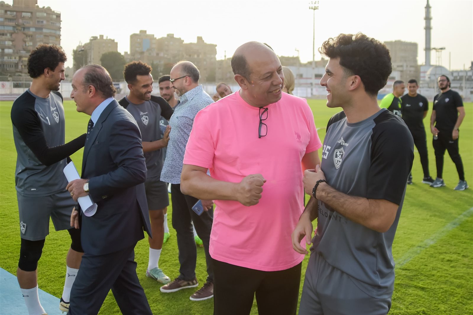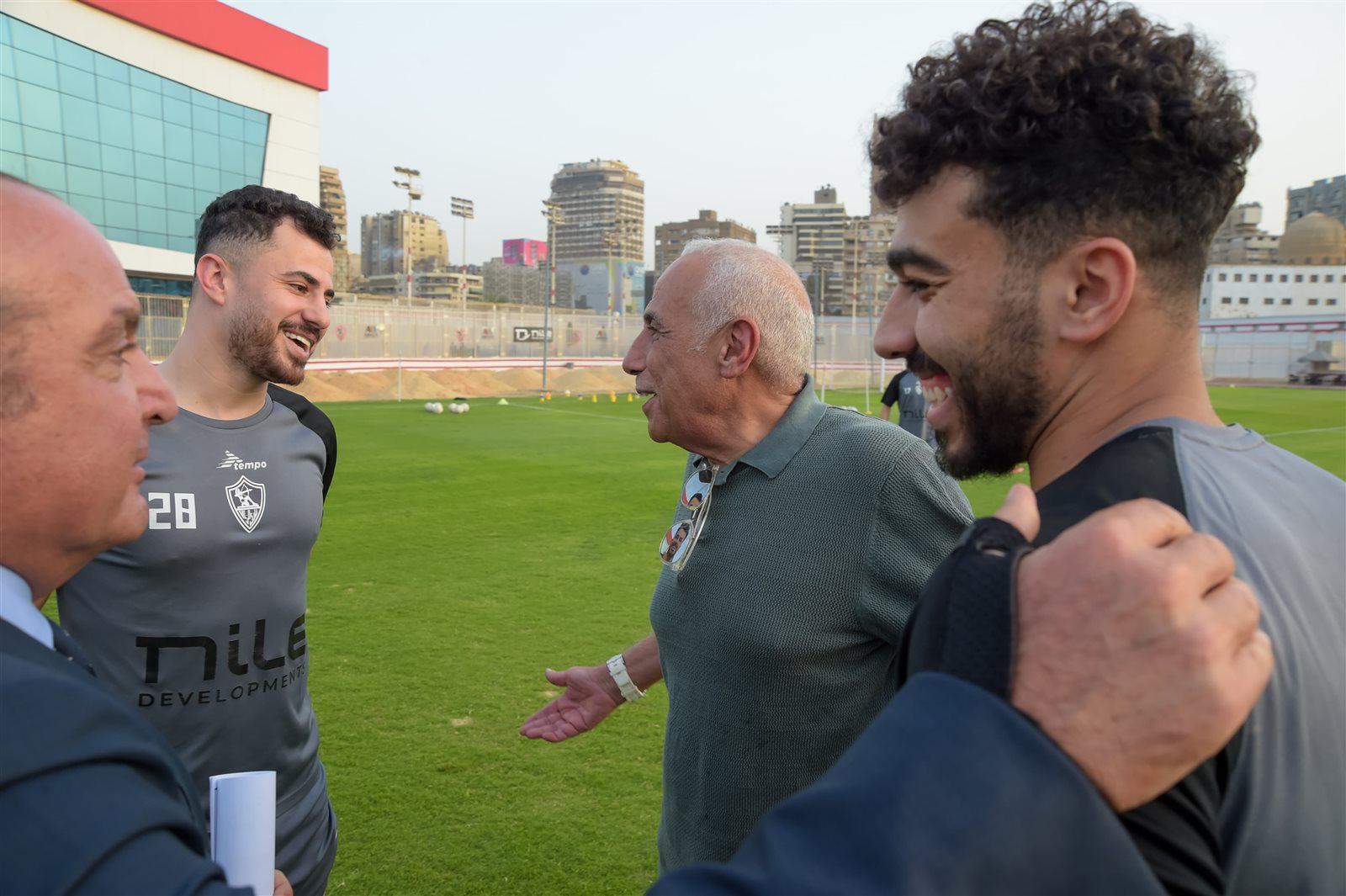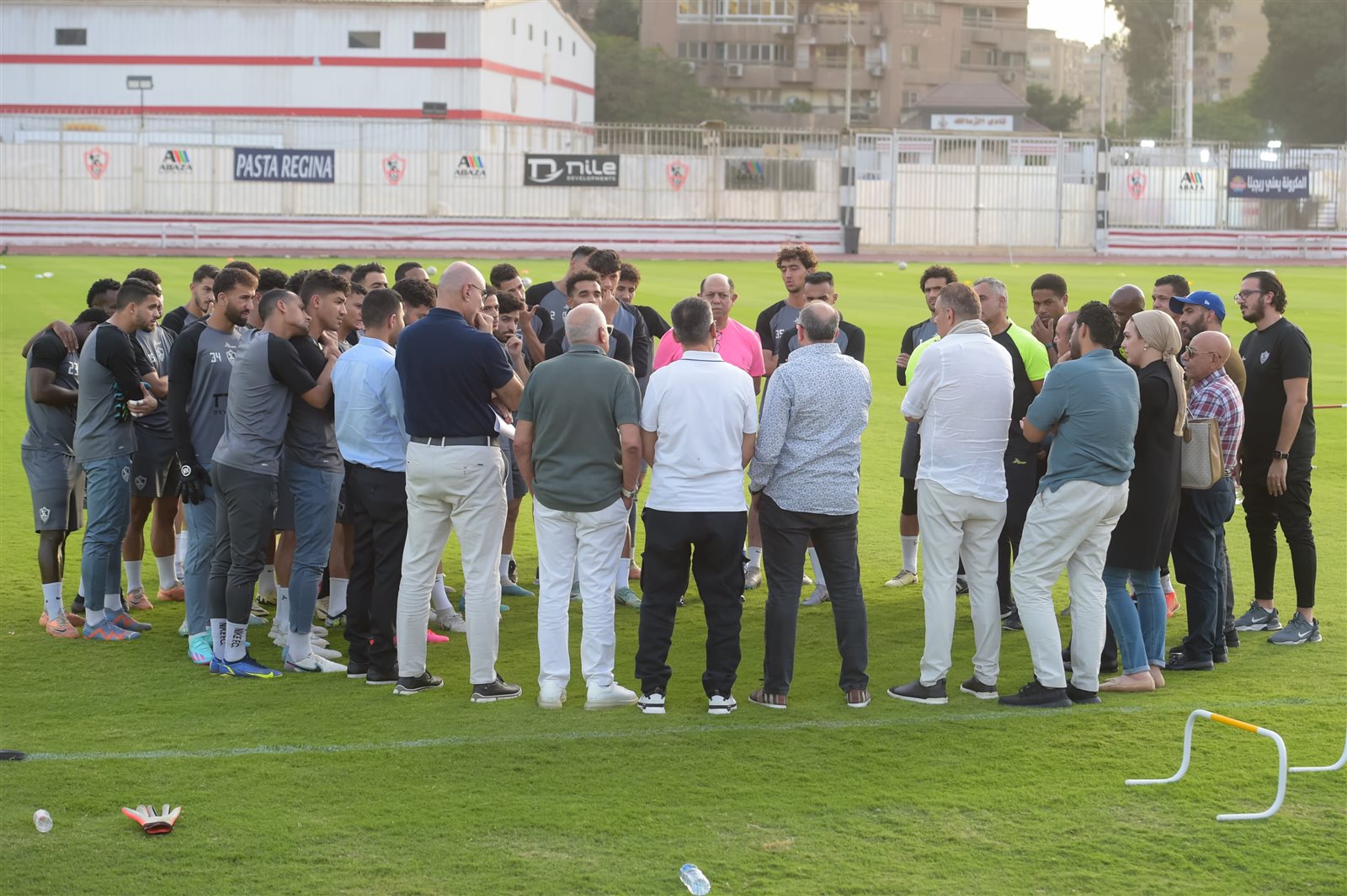 مجلس إدارة الزمالك يهنئ اللاعبين بعد التتويج بلقب الكونفدرالية في مران الأبيض اليوم