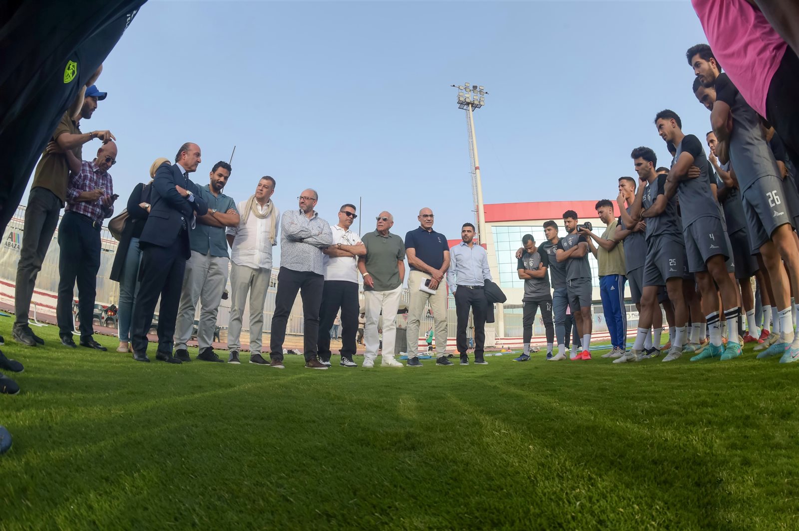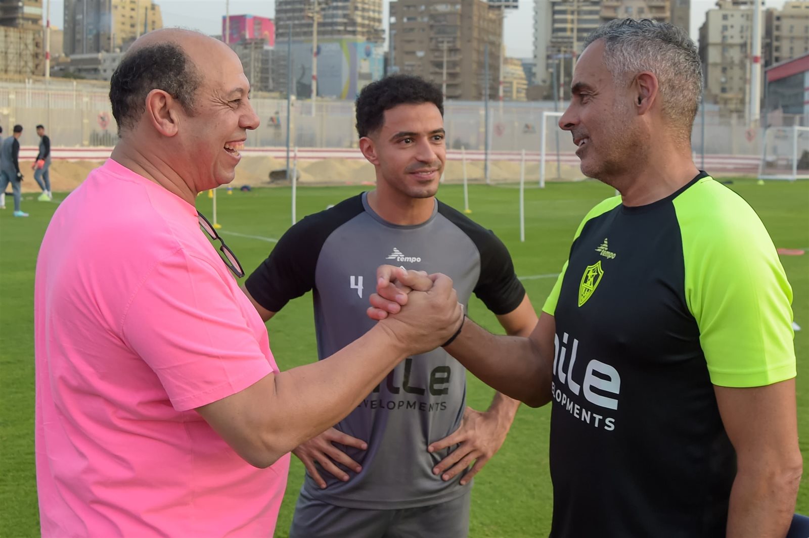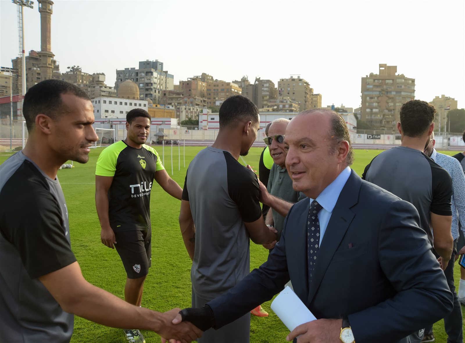 مجلس إدارة الزمالك يهنئ اللاعبين بعد التتويج بلقب الكونفدرالية في مران الأبيض اليوم