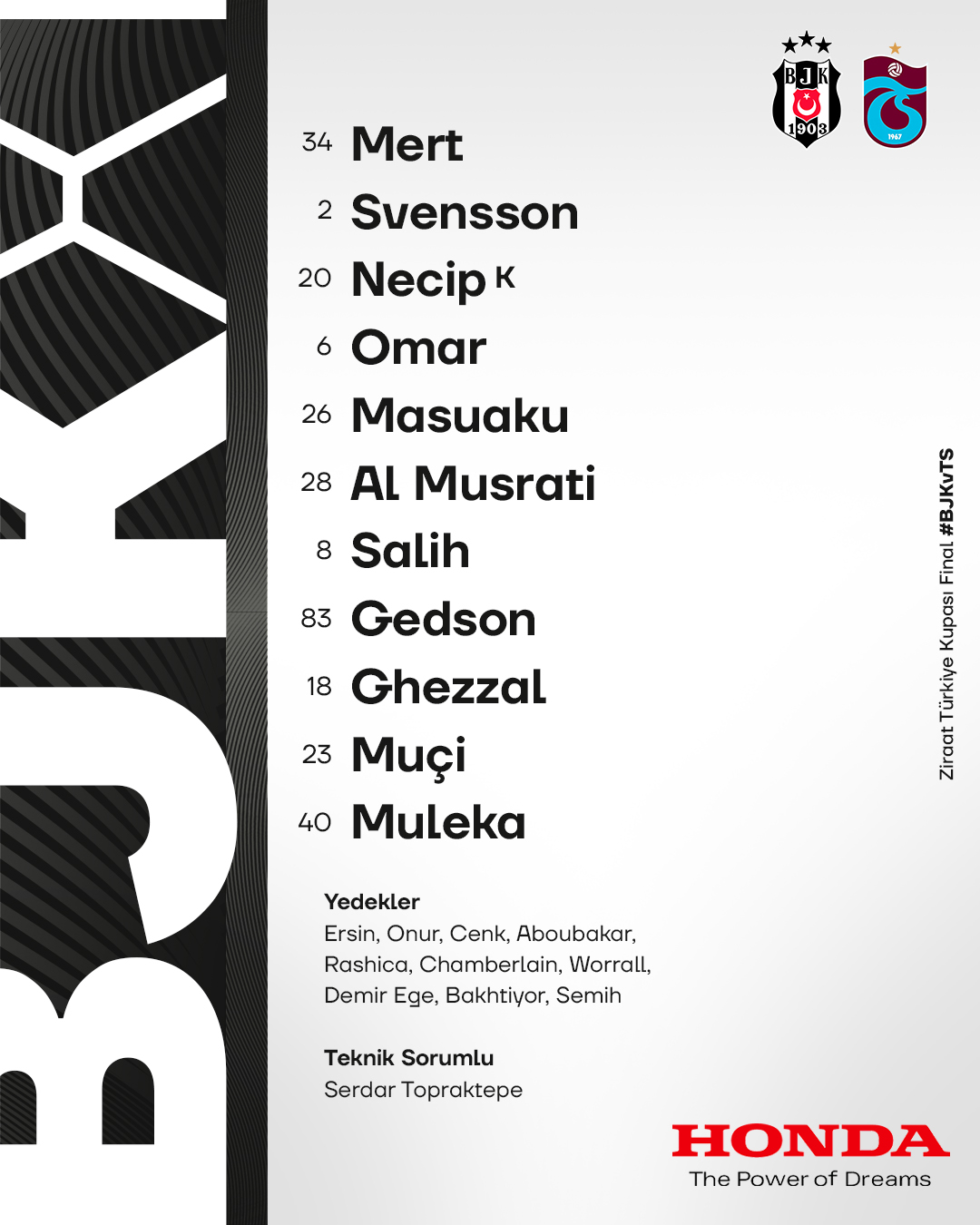 التشكيل الرسمي للقاء بين طرابزون و بشيكتاش في نهائي كأس تركيا