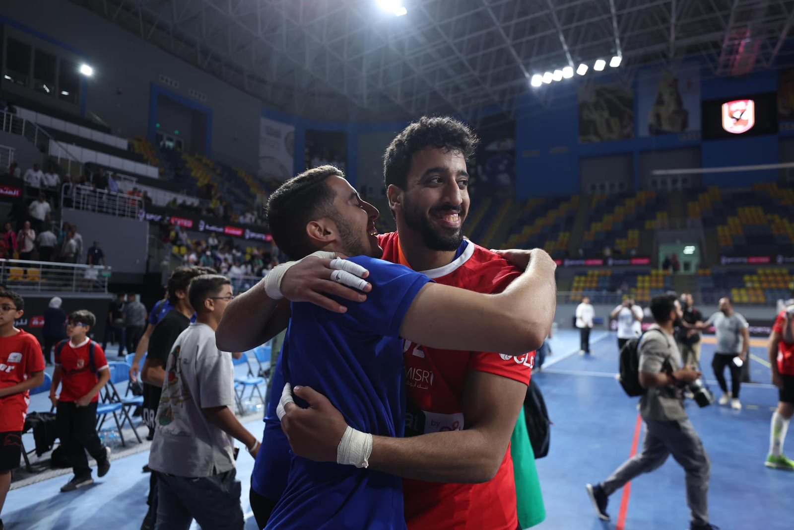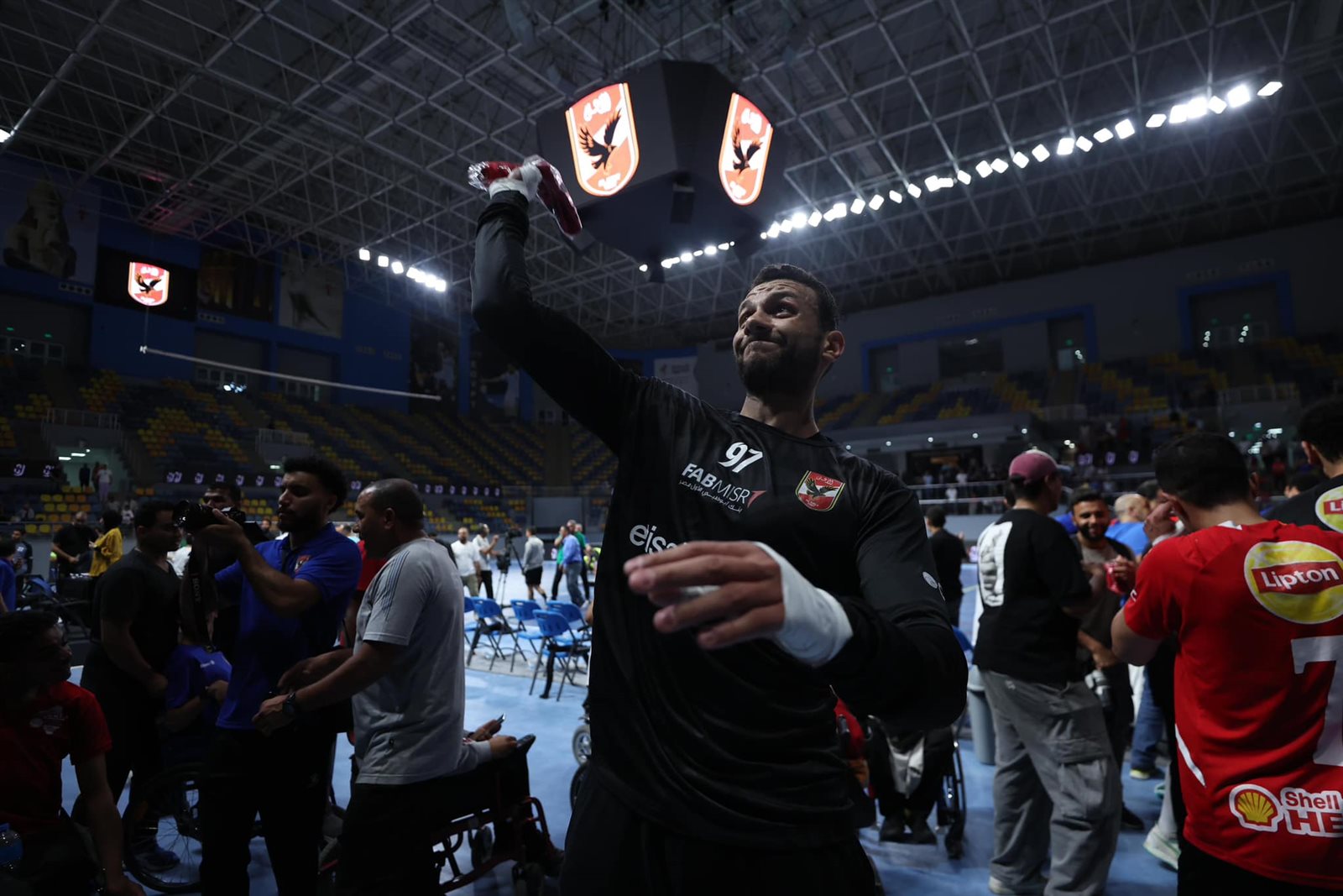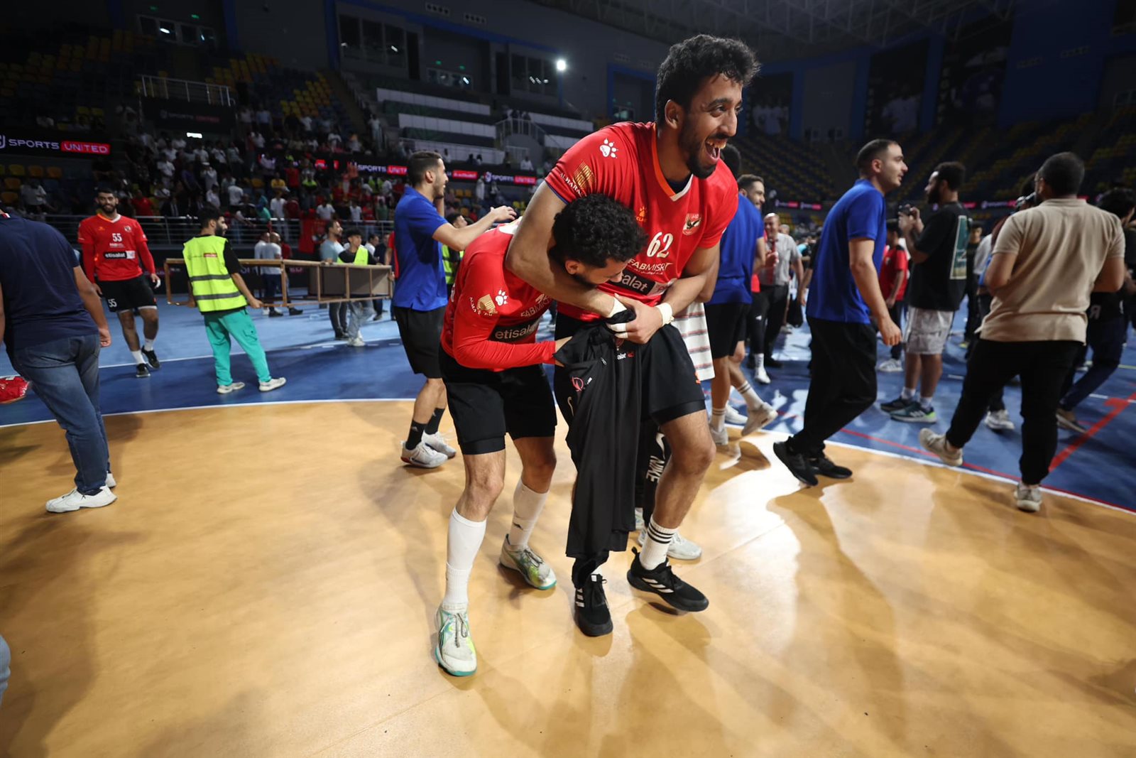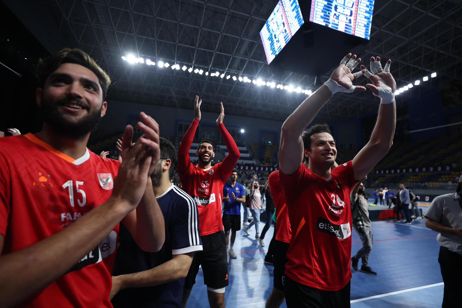 أظهر لاعبو الأهلي فرحة كبيرة بعد التتويج بلقب دوري المحترفين لكرة اليد، للمرة الثانية على التوالي، على حساب الزمالك.