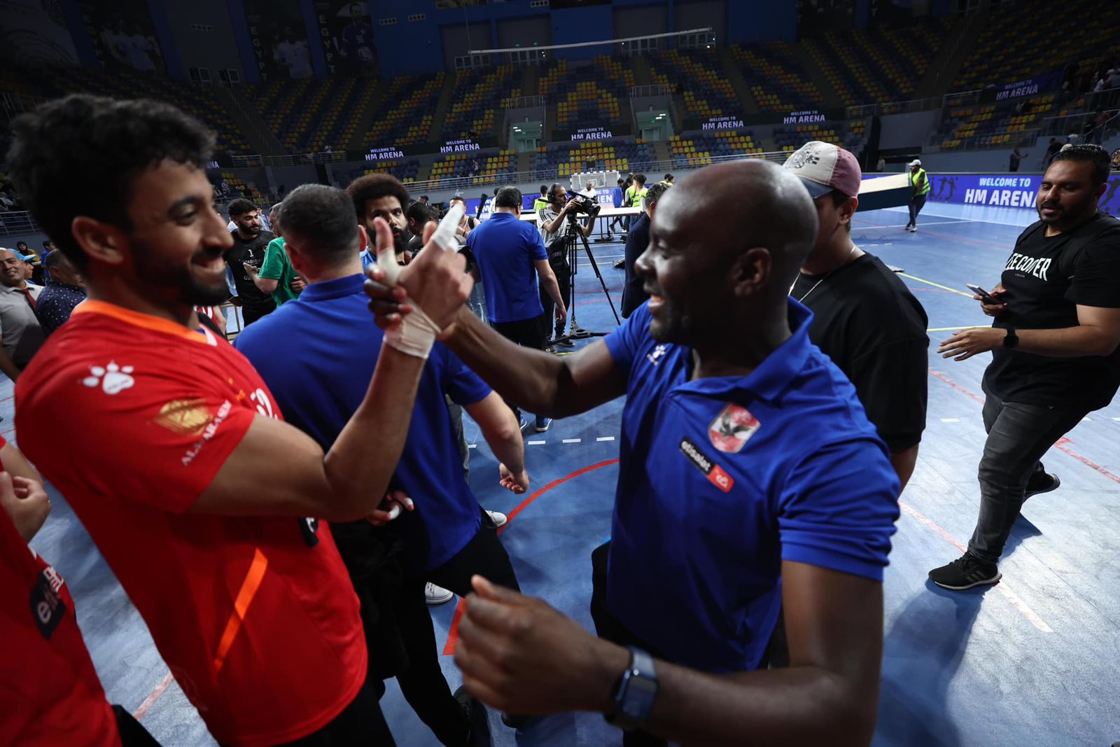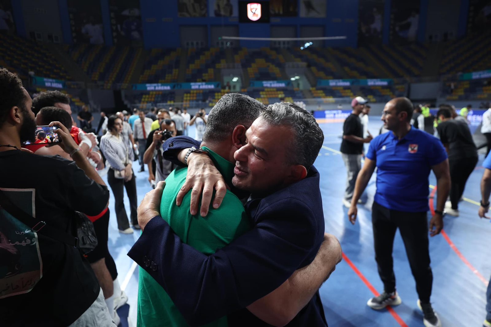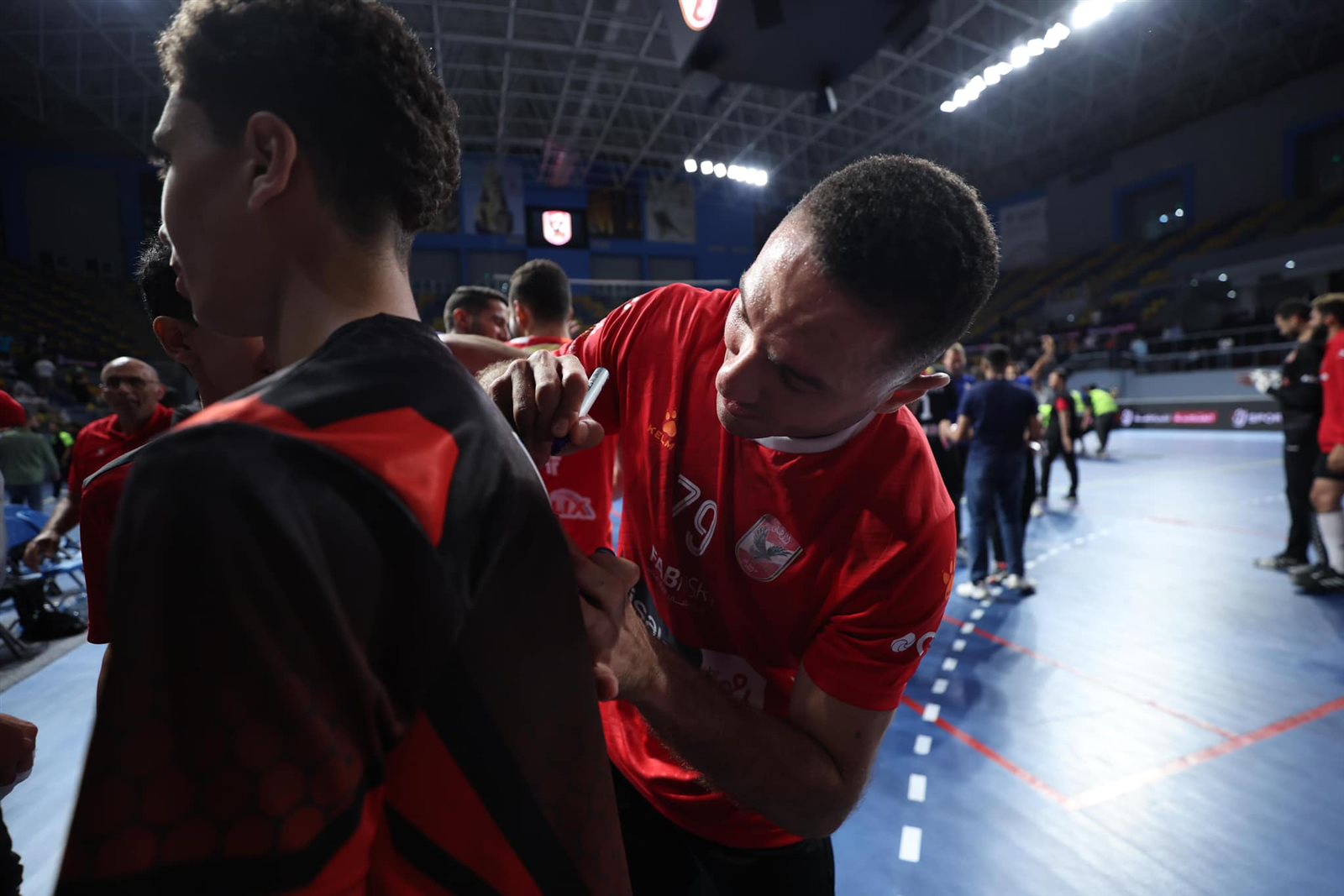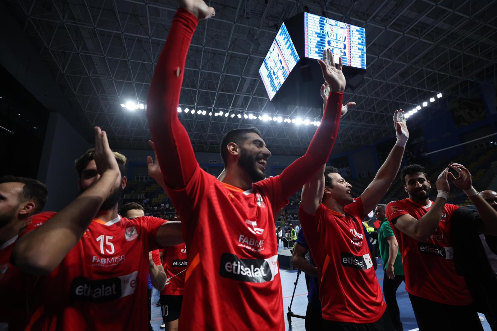 أظهر لاعبو الأهلي فرحة كبيرة بعد التتويج بلقب دوري المحترفين لكرة اليد، للمرة الثانية على التوالي، على حساب الزمالك.