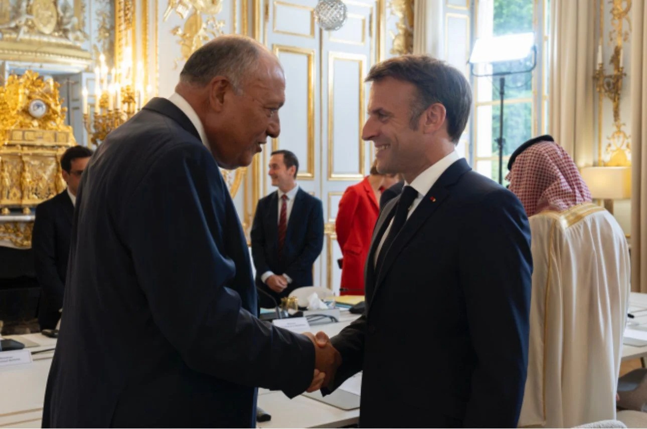 سامح شكرى ووزراء الخارجية العرب يبحثون مع ماكرون وقف الحرب على غزة